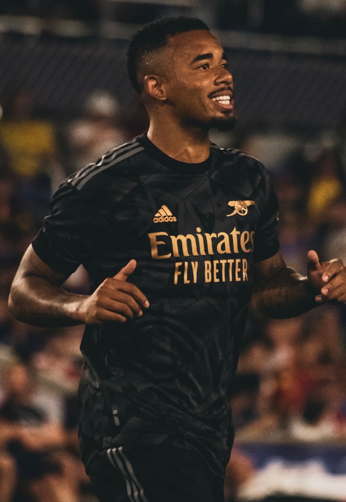 Adidas continue their run of banging Arsenal shirt designs with the club's new away shirt, which is inspired by the lettering seen on the journey to the Emirates.