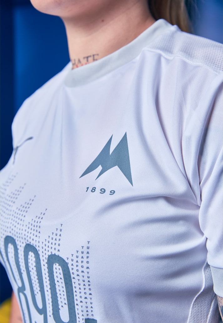 The home shirt arrives in Torquay’s traditional yellow and blue combo, with that ‘1899’ insignia taking pride of place front and centre, although it has been revamped from last season. It sits on a smart graphic design made up of the club initials. The away shirt mirrors the home shirt’s design features, albeit on a clean white base with grey accents.
