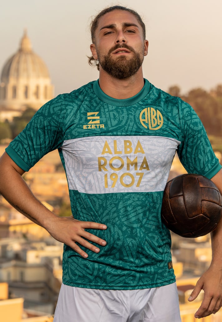 Taking focus on a lower league club that has its roots deep in the Italian capital city, Ezeta Design have created striking home and keeper shirts for Alba Roma 1907, paying respects to the traditions of the historic club.