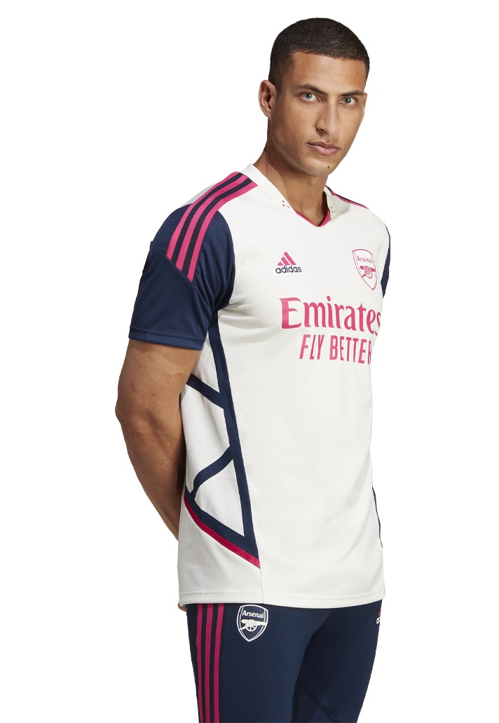 Arsenal are the first team to reveal what is now a traditional seasonal update to the training wardrobe, with a combination of collegiate navy, off white (the colour, not the brand) and magenta being the order of the day, spread across the usual selection of tees, drill tops, pants, shorts and jackets. But the standout piece that may raise some eyebrows in certain quarters, is the striking new prematch shirt.
