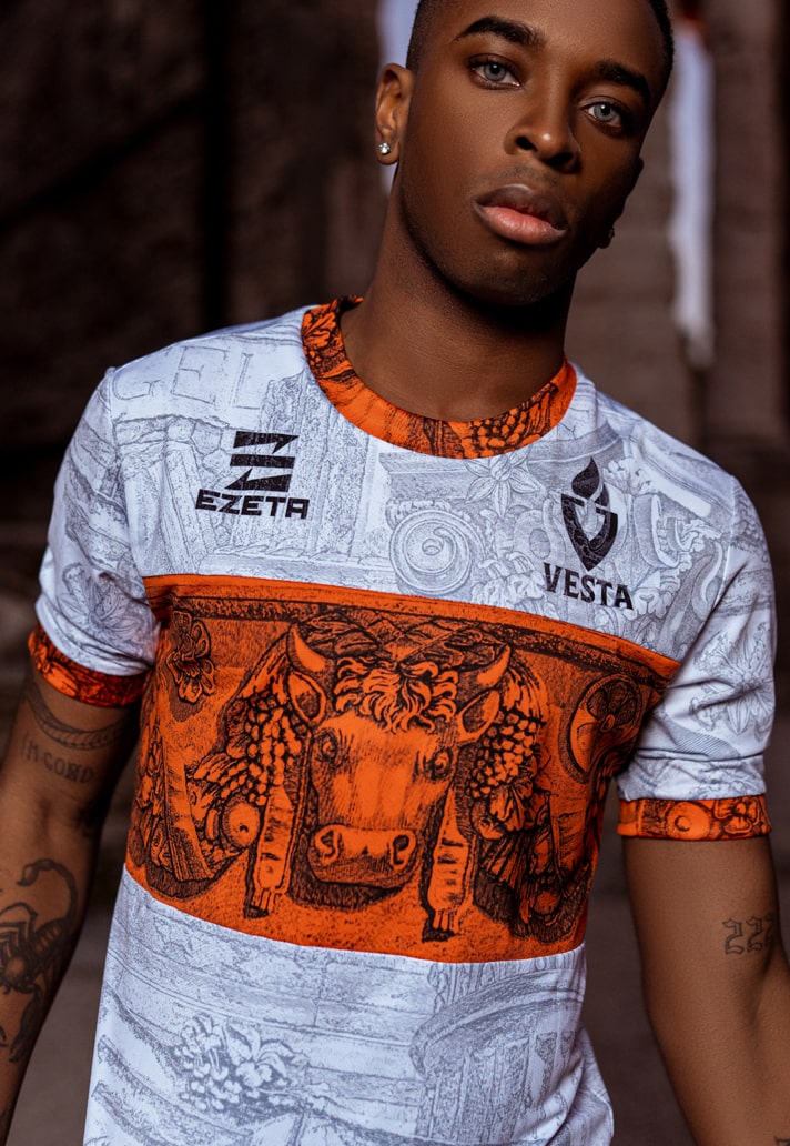 Drawing inspiration from the Roman goddess Vesta, Italian design house Ezeta have produced a striking new away shirt for Italian minnows, Vesta Calcio, announcing a new partnership between the pair.