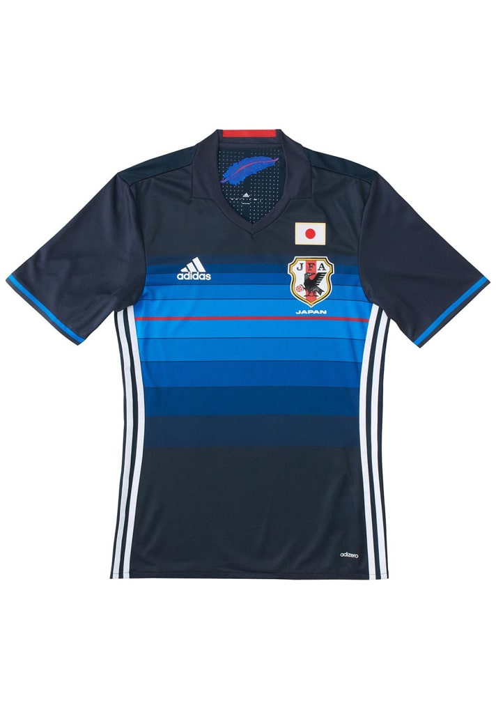 Another that veered away from the traditional setup to venture into new territory, the 2016 home shirt opted for a darker base, interrupted by a horizontal fading band of brighter blue that emanated from a central red line. A stark contrast to others on this list, but the variety being one of the reasons why Japan boast such a strong back catalogue.