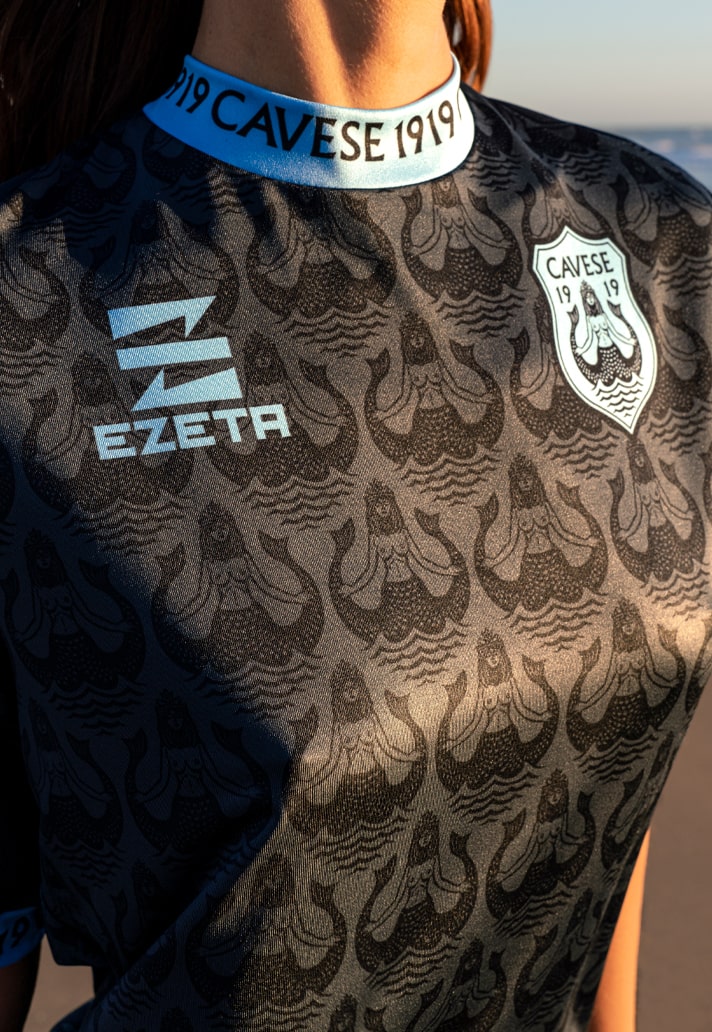 All jerseys feature the twin-tailed mermaid of the new club crest repeating throughout, while they're all also finished with the club name ‘Cavese 1919’ appearing through collar and cuffs in what is unique execution that serves to identify the club.