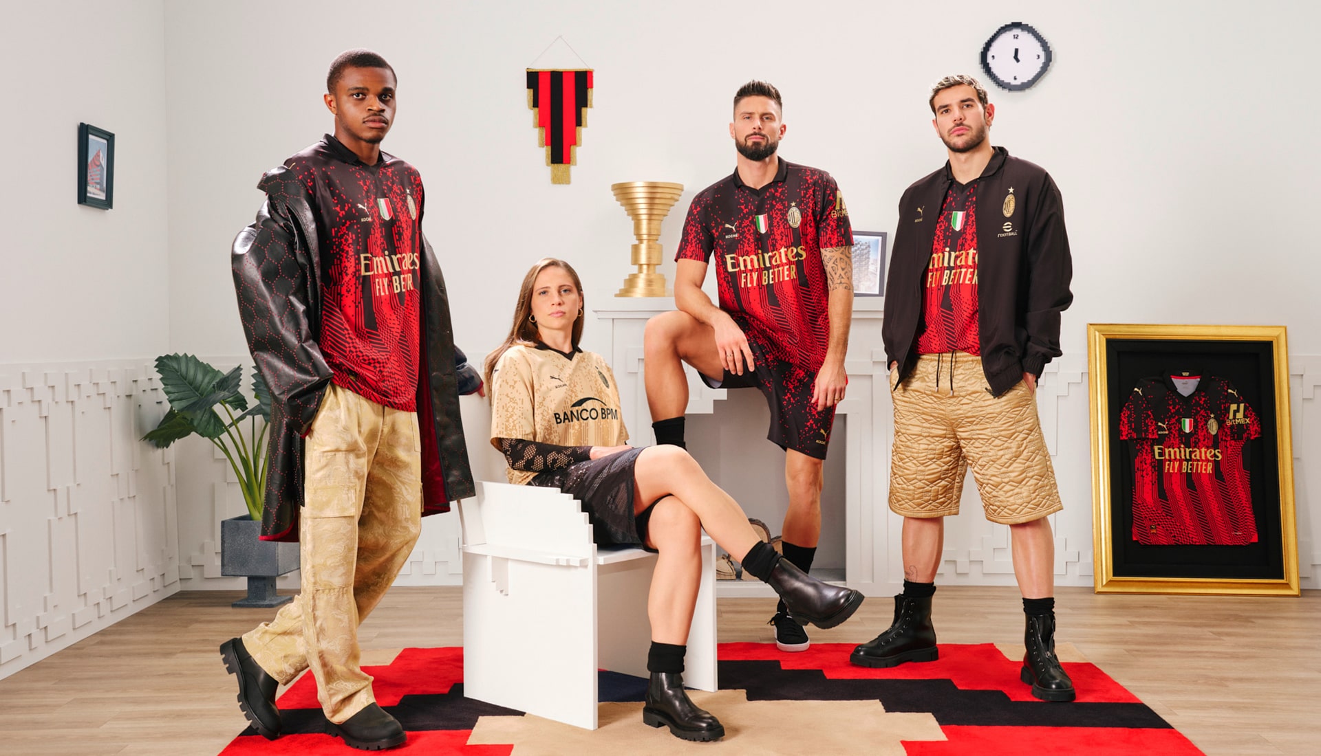Continuing to explore the cultural crossover between fashion and football and also sustainability, AC Milan have unveiled a new fourth shirt and supporting collection for 22/23, produced by high-end fashion brand Koché and PUMA.