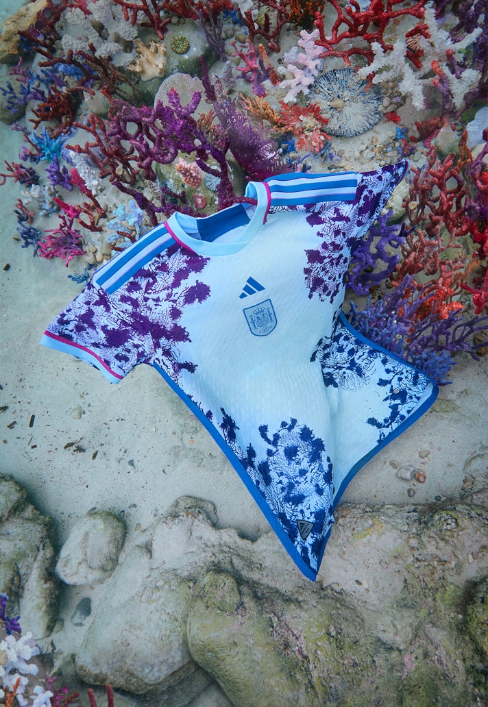 The Spanish away jersey takes inspiration from the beautiful coral reefs that can be found around Spain’s vast coastlines – a feature the country shares with the famous coral reefs found in the tournament’s host nations of Australia and New Zealand.