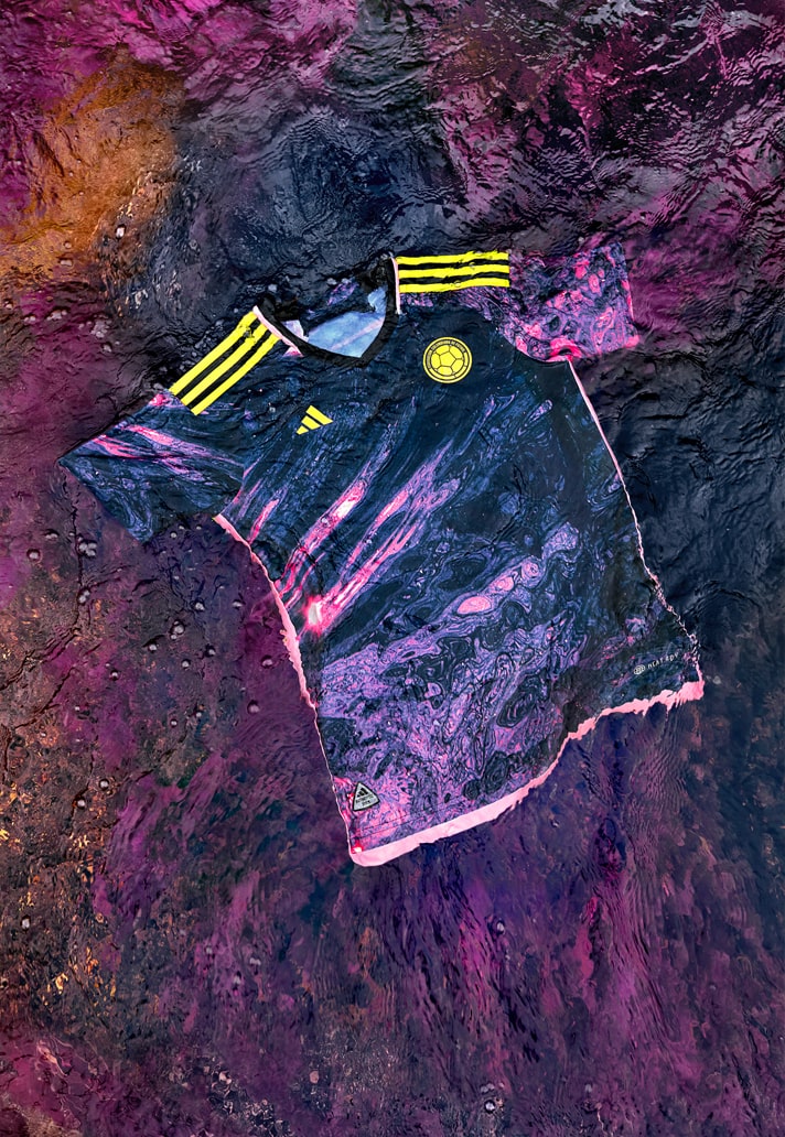 The Colombian away kit pays homage the many hues of the Caño Cristales River – often referred to as the ‘River of Five Colors’ – celebrating the unique changing phenomenon that occurs due to the reflection of light against the water. Utilising traditional federation colours, re-imagined through the lens of flowing water and the reflection of light, the design brings in a fresh look that celebrates the country’s rich biodiversity.