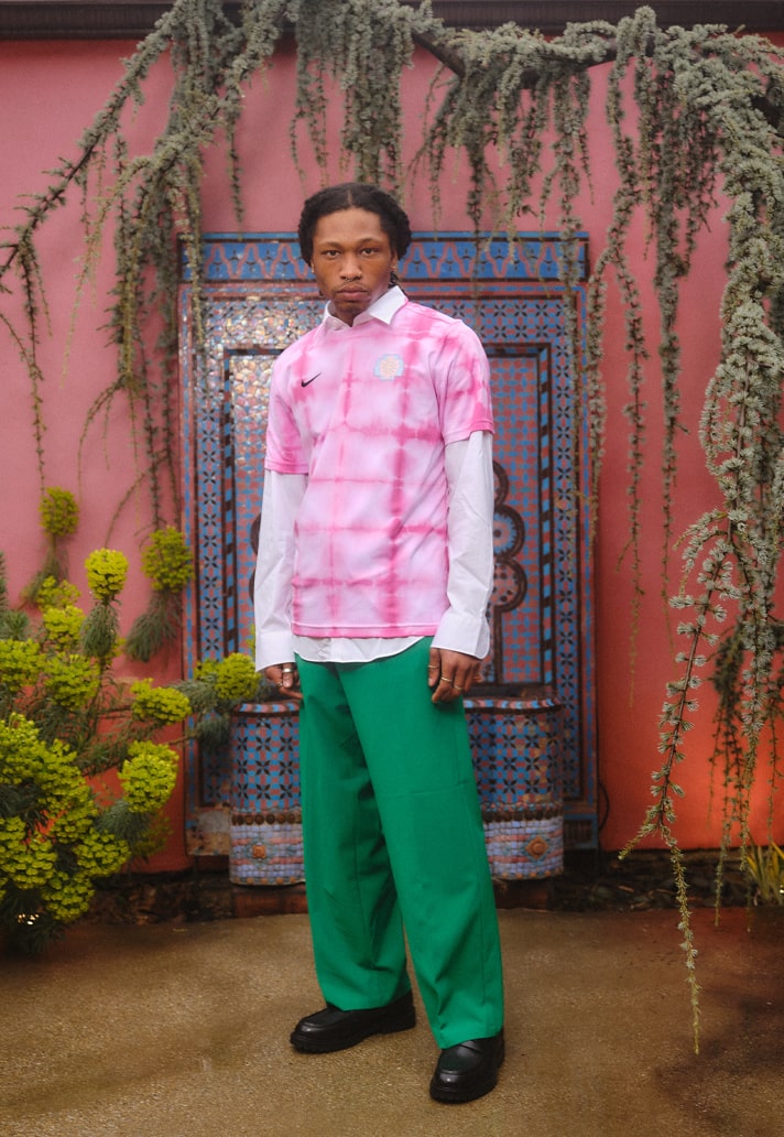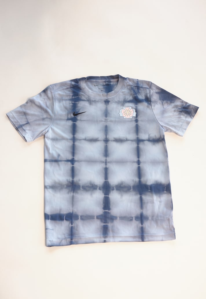The Spring/Summer 2023 Home and Away jerseys were hand-dyed using a Japanese technique called Shibori Itajime, which utilises boards clamped together around sections of folded fabric to resist the dye in different patterns. The technique creates a unique but uniform aesthetic for each shirt – an effect that reflects the diversity and camaraderie of the team. The box/windowpane design references Portuguese tiles, which is a nod to the heritage of club owner/founder Lucas Mendes and creative director Jared Soares. Mendes and Soares hand-dyed each shirt on the stove tops of their kitchens at home.