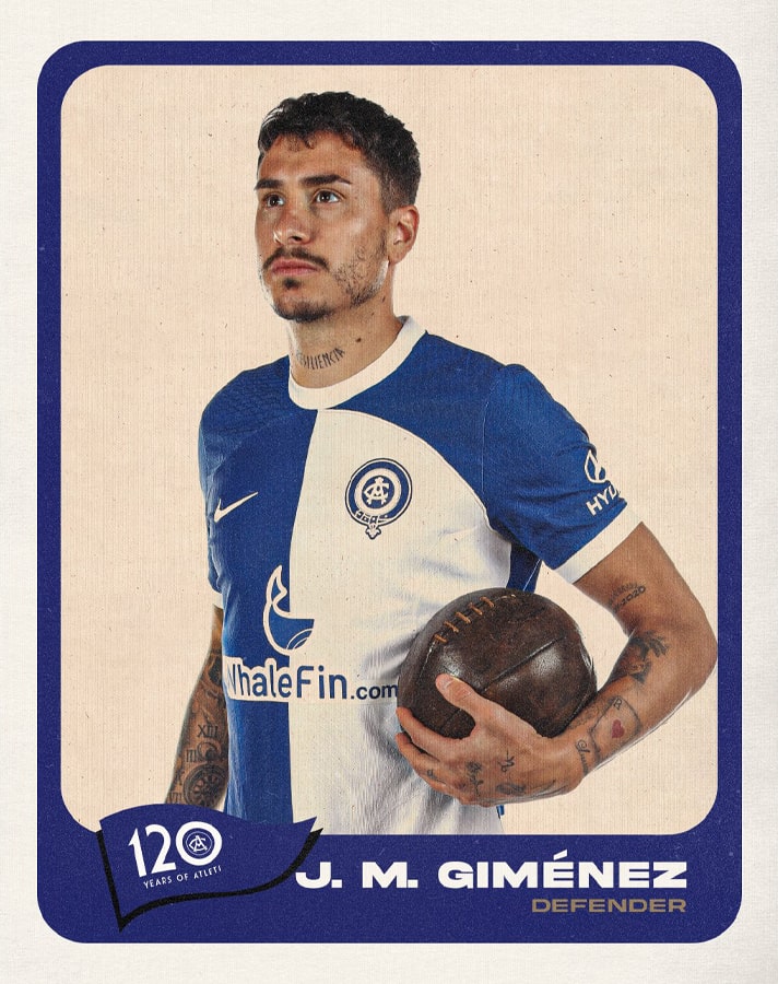 120 years ago, on 26 April 1903, a group of Basque students living in Madrid teamed up with members of the Biscayan team to found the club we know today as Atletico Madrid. At the time it was a branch of Athletic Club, and it adopted the colours of the Biscayan team, who at that time wore blue and white. And so, to celebrate the club’s 120 year anniversary, Nike have created a kit inspired by the one worn all those years ago, arriving in blue and white and with the original club crest on the chest.