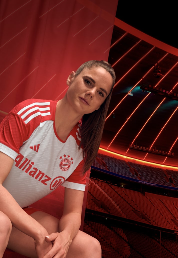 FC Bayern München player, Lina Magull, says: "When you think of FC Bayern, images of red and white immediately come to mind. Even as a child, my room was decorated in these colours, and it's a dream to be able to wear them on the pitch. The new jersey combines history and elegance - and we want to do justice to these colours."