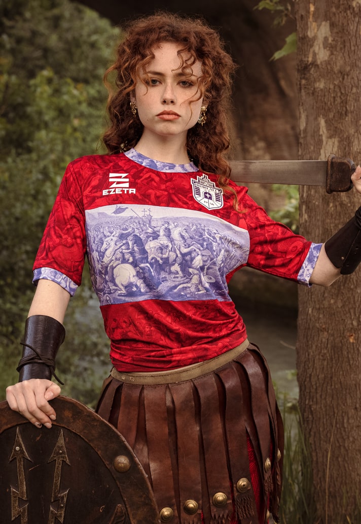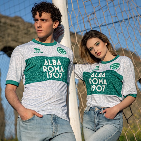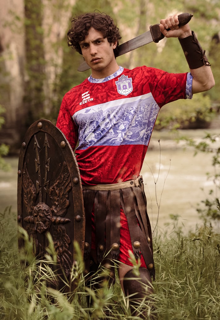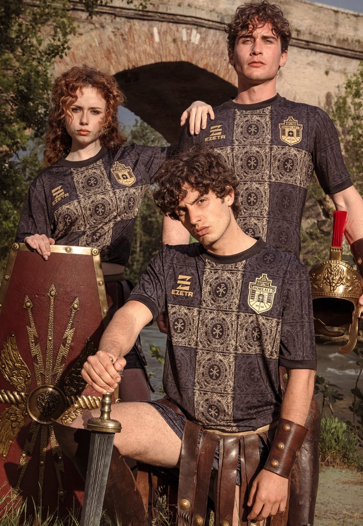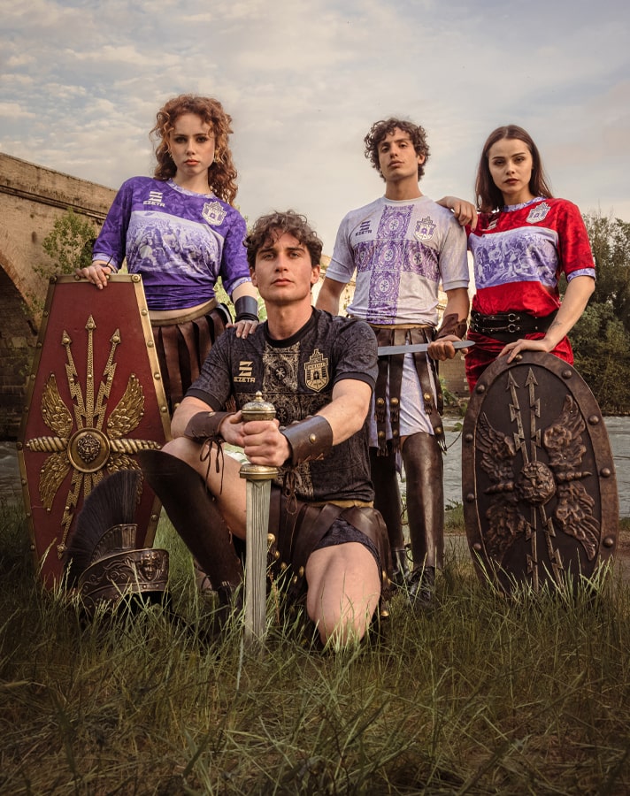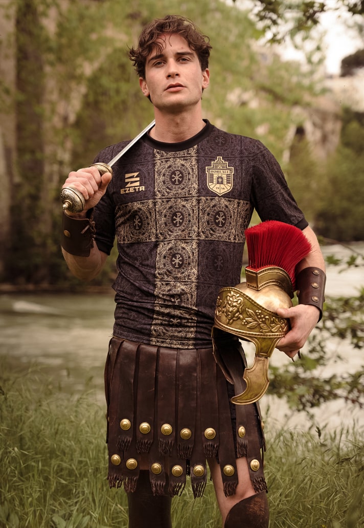 Ezeta have been carving a reputation for themselves over the last few years, partnering with Italian non-league sides from the Rome district and reinventing their identities, often using the history of the region to produce some extravagant football shirt designs. The latest in this line comes for Eccellenza side Boreale ASD, who receive a full complement of four kits, all with designs inspired by The Battle of the Milvian Bridge, presented in the studio’s signature lavish photoshoot style.