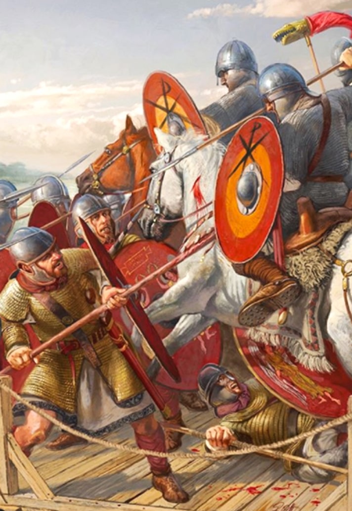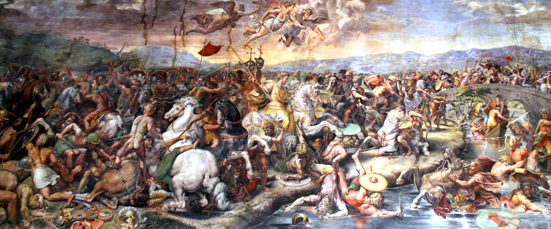 Right, ready for a bit of history? The Battle of the Milvian Bridge took place between the Roman Emperors Constantine I and Maxentius on 28 October, 312 AD. It takes its name from the Milvian Bridge, an important route over the River Tiber. Constantine won the battle and started on the path that led him to end the Tetrarchy and become the sole ruler of the Roman Empire. Maxentius drowned in the Tiber during the battle; his body was later taken from the river and decapitated, and his head was paraded through the streets of Rome on the day following the battle before being taken to Africa. Pleasant, eh? In short, the battle marked the beginning of the imperial rule of Constantine, representing the victory of Christianity and the end of the Pagan world. Got all that? Good.