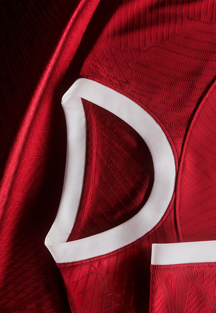 Probably fair to say that most Liverpool fans won’t mind seeing the back of what has been quite a turbulent season, and the light at the end of the tunnel is brought into focus with the reveal of the club’s new home shirt for the 23/24 campaign from Nike. Following on from the all-red home design from this season, next season will see the reintroduction of white trim, which appears on the rounded collar and cuffs.