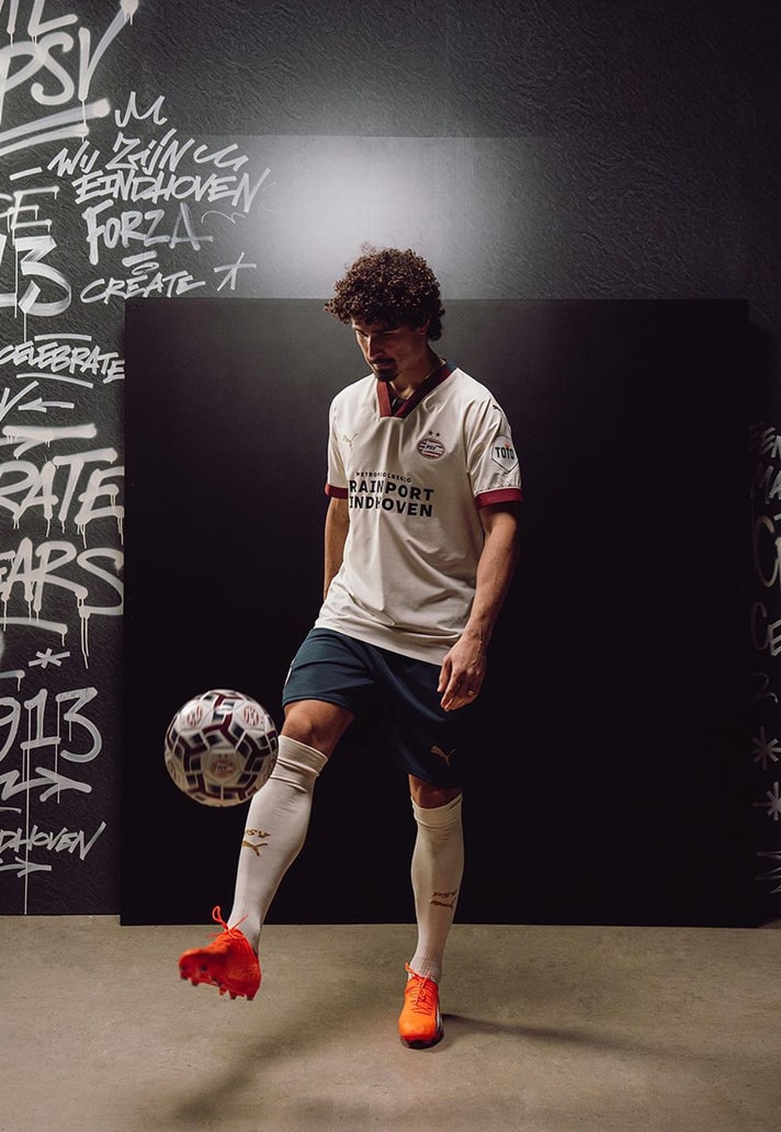 As part of the celebrations surrounding the upcoming 110th anniversary of the club, PUMA have launched the PSV Eindhoven 23/24 away shirt.