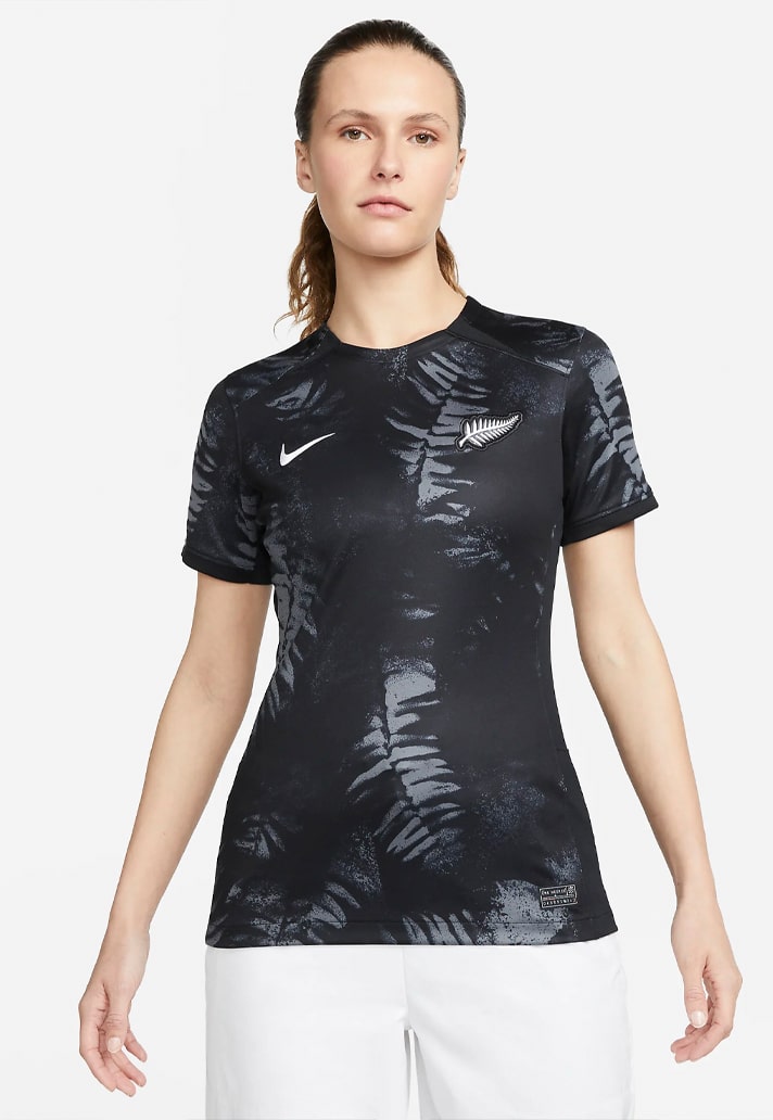 The New Zealand National Team Collection showcases the country’s unique and iconic culture and landscapes. The home kit pays homage to its landscapes through a new look for a much-loved pattern that captures a longtime symbol of New Zealand’s national identity — the Silver Fern. To create the distinct allover pattern, Nike designers used black and silver spray paint techniques.