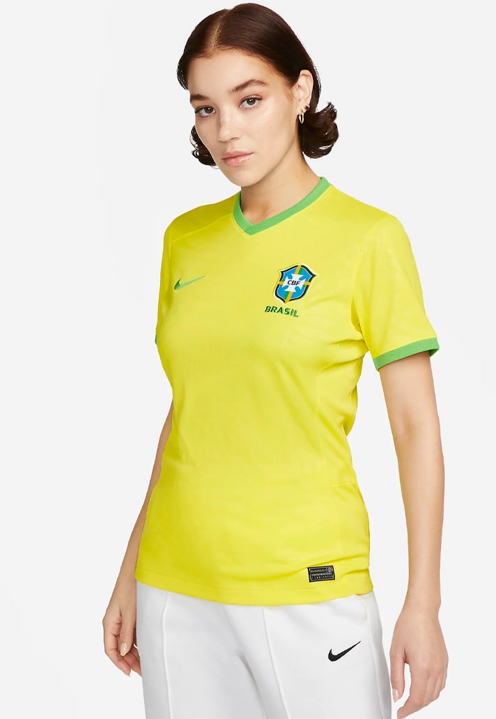 Inspired by the Amazon, the Brazil National Team Collection weaves together a distinct look through a tropical foliage pattern. The yellow home kit highlights the beautiful Amazon ecosystem through the pattern’s knit textures. The blue away kit plays into the landscape’s deep, bright jungle colours.