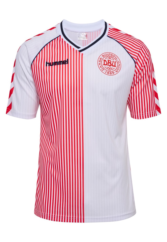 Making it to 100 years old is a pretty big achievement in pretty much all walks of life, and Danish sports brand hummel have done so this year. To commemorate the milestone they’re relaunching the iconic Denmark away shirt from the World Cup in 1986. It’s the first time that the away shirt has been reprinted, and as a celebration of hummel, the national team will wear the shirt for the European Championship qualifier against Northern Ireland on 16 June in the Parken stadium.
