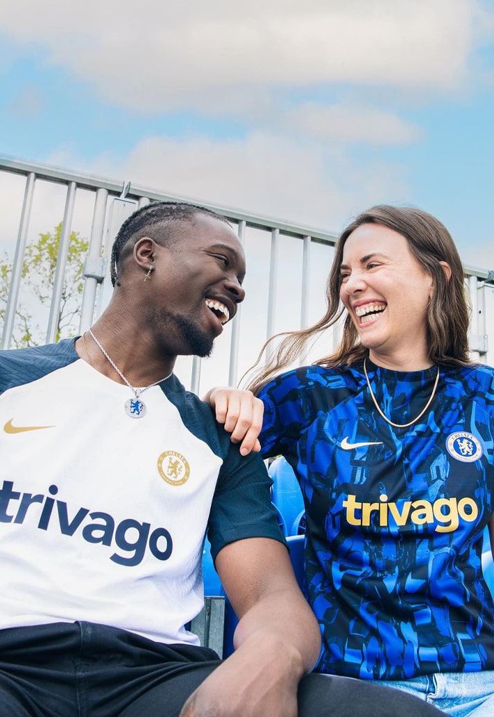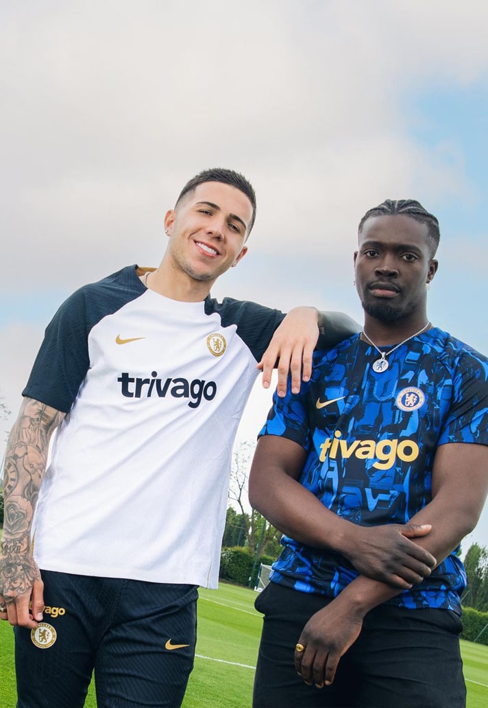 It features a bold all-over graphic in blue and black, and that is again joined by golden accents, which are perhaps a little more apparent given that even the Trivago sponsor logo takes on the look. Prematch shirts often borrow from the official match kits, skewing the look for a radical take, so what clues could this give us about Chelsea’s new kit? Probably going to be blue, innit.