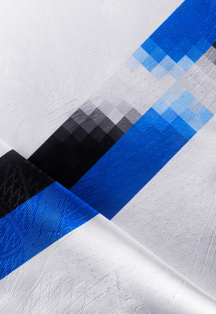 Inter rarely veer away from a white jersey as their away option, and this season is no different, with the tried and trusted formula given a slight revamp to sit alongside the new home shirt. The new away design features a black and blue diagonal stripe, just like the one that featured on the jersey that the Nerazzurri wore in 1963/64, a campaign where they won their first European Cup. 60 years later, although the design has evolved and now includes an updated digital pattern that resembles the mosaics found in Milano.