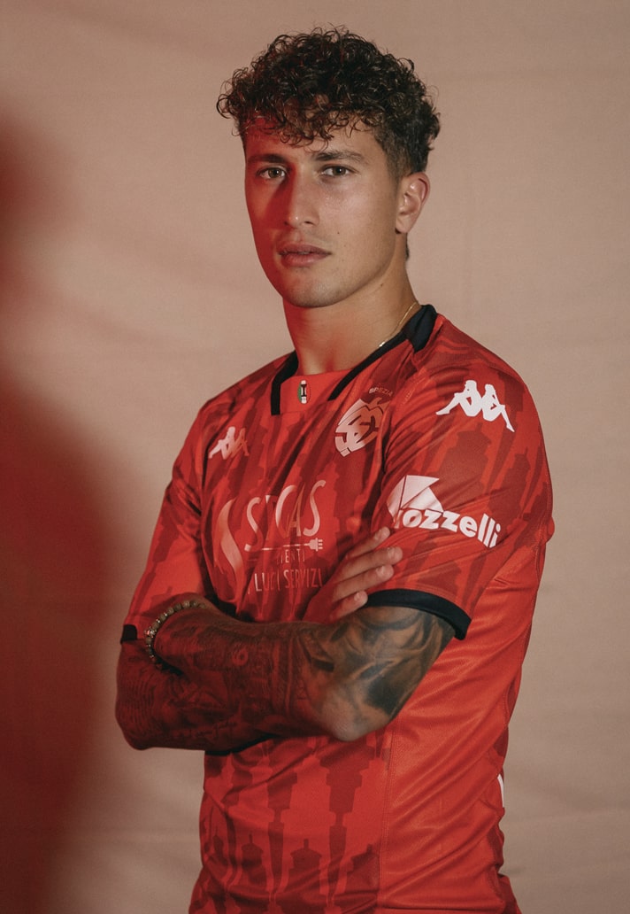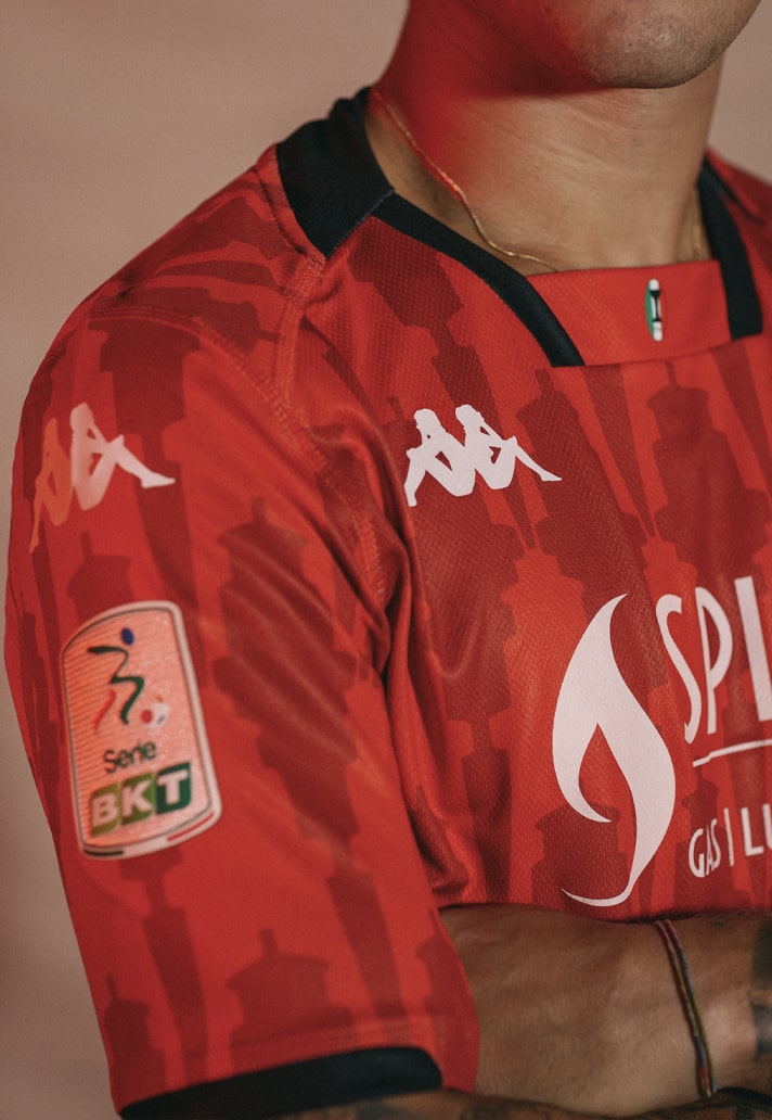 The La Spezia lighthouse is recognised as a symbol of the city, and the new Spezia Calcio 23/24 KOMBAT Pro third shirt design features features it prominently, paying homage to the club’s connection to its home city. The red tone-on-tone graphic that repeats throughout the body creates a unique and distinctive optical effect. It serves to frame the new logo of the club, which appears in white alongside the branding and sponsor, as well as the tricolor of the 1944 Scudetto, a reference to the past of Spezia Calcio, which embellishes the black collar in its centre.