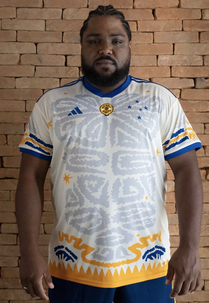 With the message “Braid, Brazil and Africa”, the Black Excellence campaign is inspired by different types of braids throughout history, representing these symbols in the shirt design. Predominantly cream coloured, the shirts have designs that symbolise braids, mixing yellow elements on the sleeves and lower front with the more traditional colours of each club, so blue for Cruzeiro, red for SC Internacional, and black for Atletico Mineiro. In the central part of the shirt, the yellow “Da Raiz à Luta” patch completes the design.