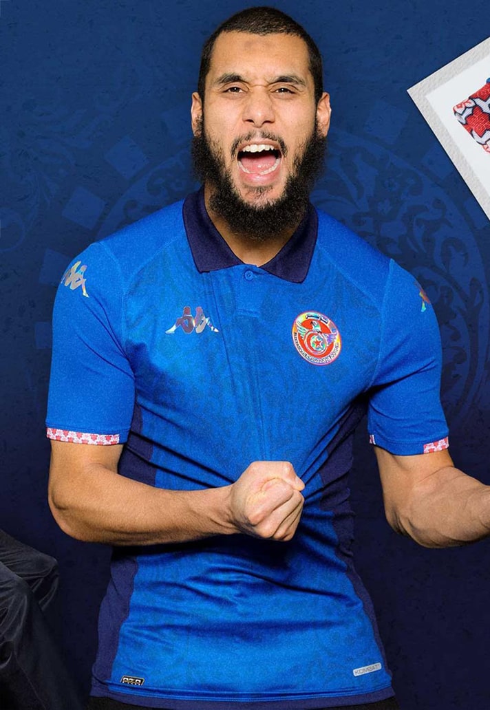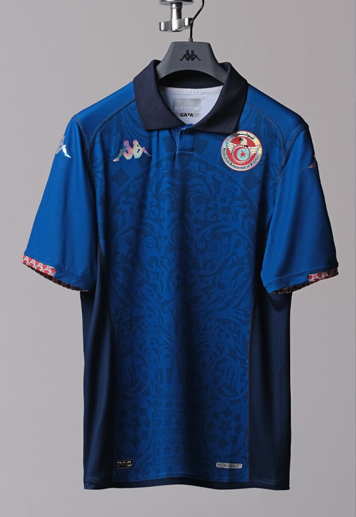 A few days after revealing the new home and away shirts, Kappa and the Tunisian Football Federation have now presented the third jersey for the African nation, which pays homage to the Unesco World Heritage City, Sidi Bou Said. Where the home and away are red and white respectively, this third shirt follows a similar template, complete with vintage polo collar, but it arrives in a luxurious royal blue colour scheme as a nod to Tunisia’s location and proximity to the Mediterranean.