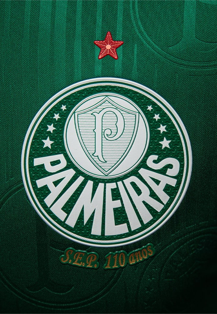 For the first time the home and away shirts share the same print, with both featuring three historic Palmeiras emblems, embossed into the very fabric of the shirt, in reference to the 110 years that will be completed in 2024. The crests featured are the Palestra Italia shield (created in 1914), the Cruz de Savoia (1916), symbol of the Italian Royal House, and the P (1942), which was the first shield to reflect the change of the team's name to Palmeiras. The current badge, used since 1959, is still printed on the chest.