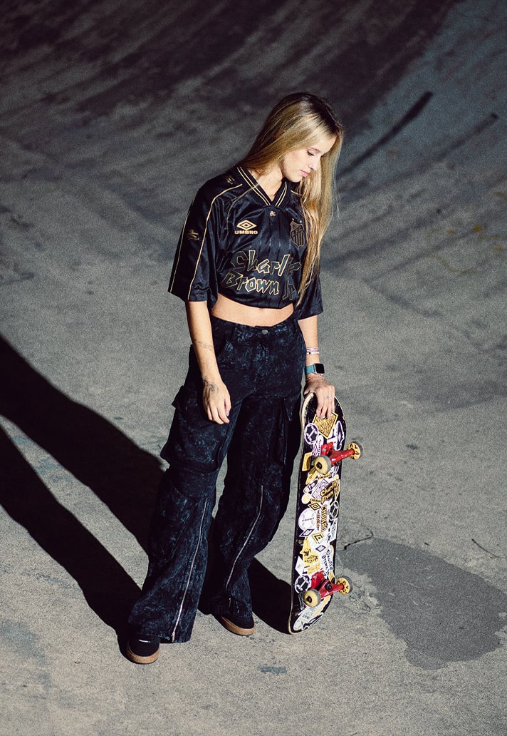 The Santos x Charlie Brown Jr. shirt is available on santosstore.com.br and on umbro.com.br