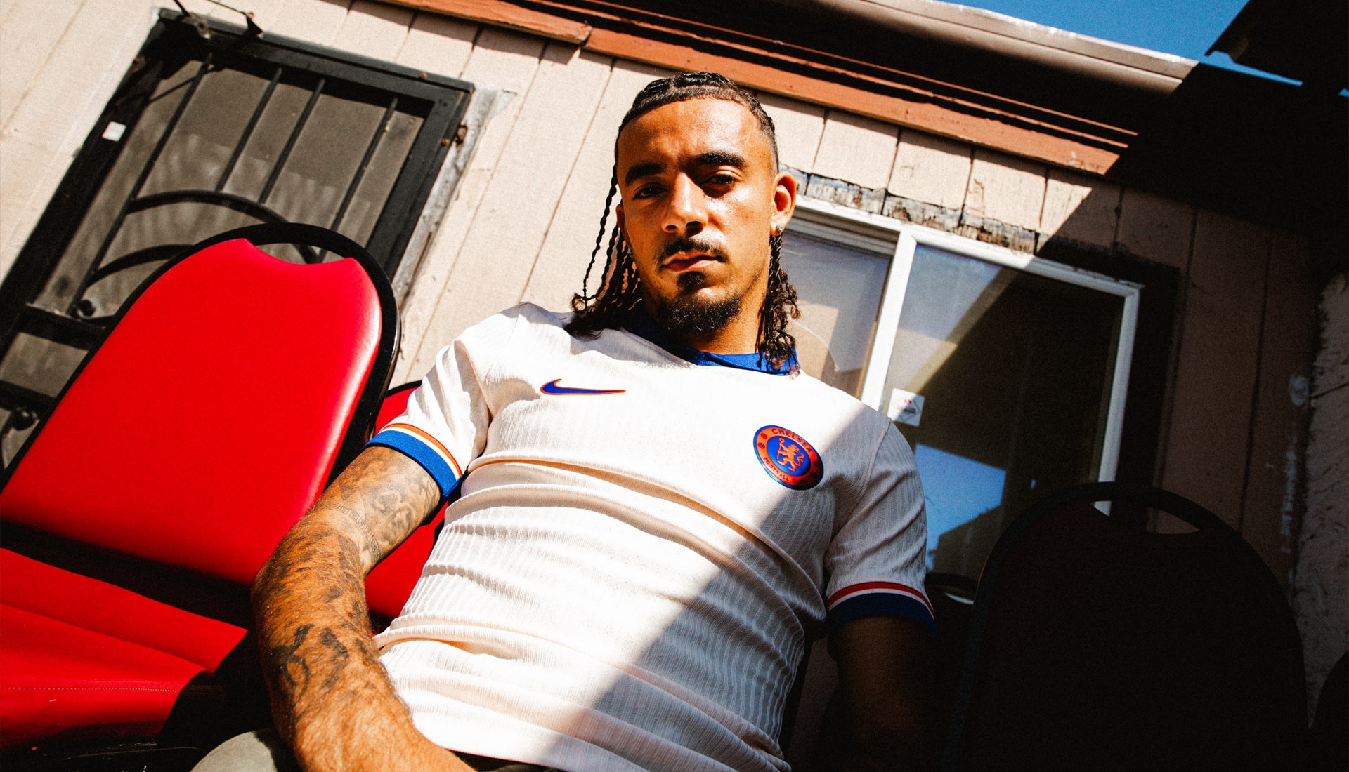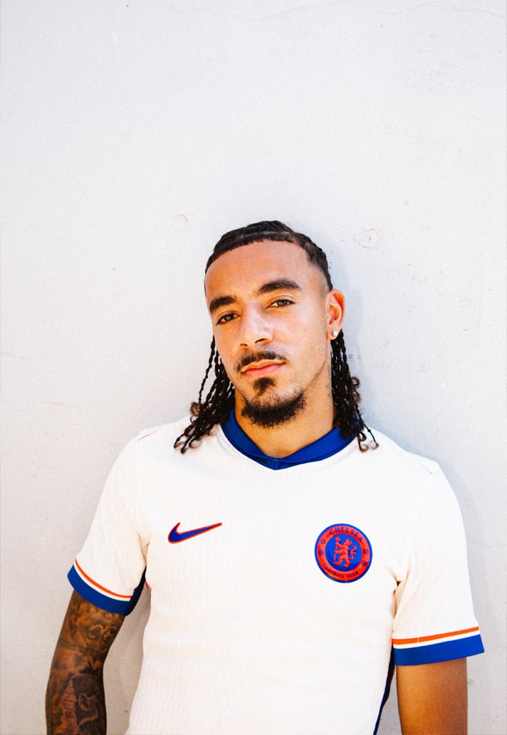 Following fairly swiftly on from the reveal of their new home shirt for the 24/25 season, Chelsea have now revealed their new away shirt while on their U.S. pre-season tour. The design sees the ‘blue flame’ theme from home kit continuing on, with the orange accent colour representing the “fire and the shared ambition, burning passion and determination of the whole club to succeed both on and off the pitch”. Fair enough, can’t argue with that. On a visual level, what we get is a clean white base (actually ‘Guava Ice’), accented by these ‘Team Orange’ pops, which are coupled with the ‘Rush Blue’ of the home kit.