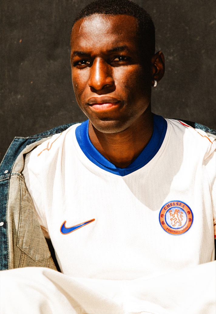 The orange is most prominent on the custom crest, created for this season, while it also borders the Swoosh on the right of the chest. Its final appearance is on the cuffs, where it is once again coupled with the blue, while the collar and side panels are a block of blue only.