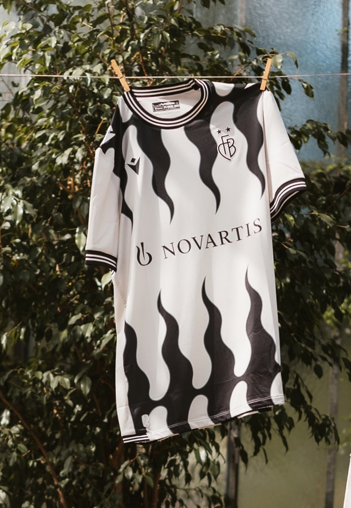 A couple of years back Macron produced one of the most underrated kits of the campaign for FC Basel. Now they’re at it again, and this time it’s a design that the brand has carried across both the home and away kits. Drawing inspiration from the city’s "flamed flag”, both shirts see a flame graphic dominating the whole design. This motif references the ancient standards of the city on which black ‘flames’ on a white background converge towards a Baslerstab (bishop’s crosier) in the centre. So that look is more faithfully recreated on the away shirt, while the home shirt is presented in the club’s traditional red and blue.