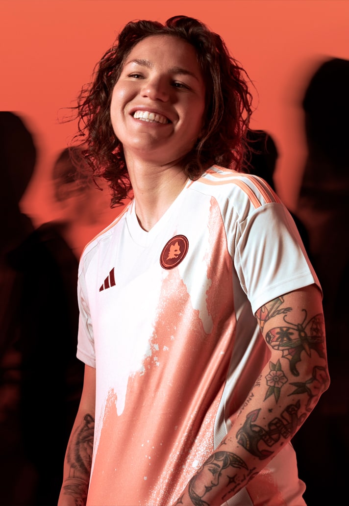 Following in the footsteps of the recently revealed home shirt, the new AS Roma away shirt from adidas also draws inspiration from Testaccio, the cradle and iconic place in the hearts of Giallorossi supporters. The design is inspired by street art that distinguishes the modern urban landscape, replicating the spray paint effect that characterises the neighbourhood’s urban scenery and reinterprets Gratton's "Lupetto" (wolf cub) in a contemporary way.