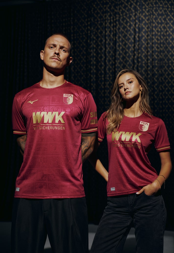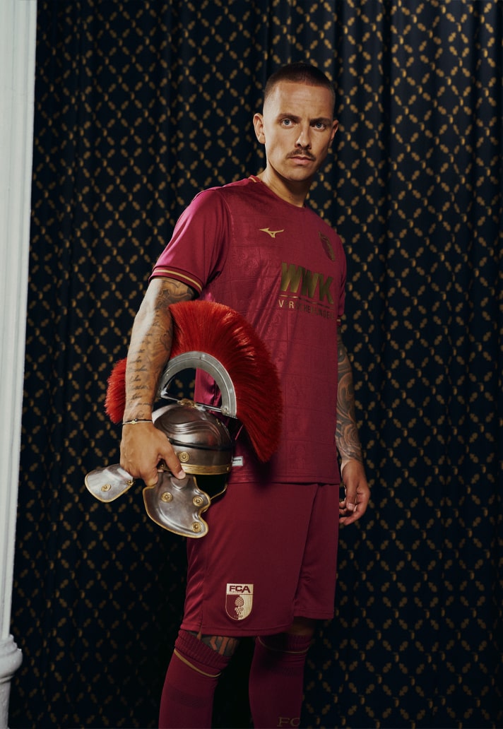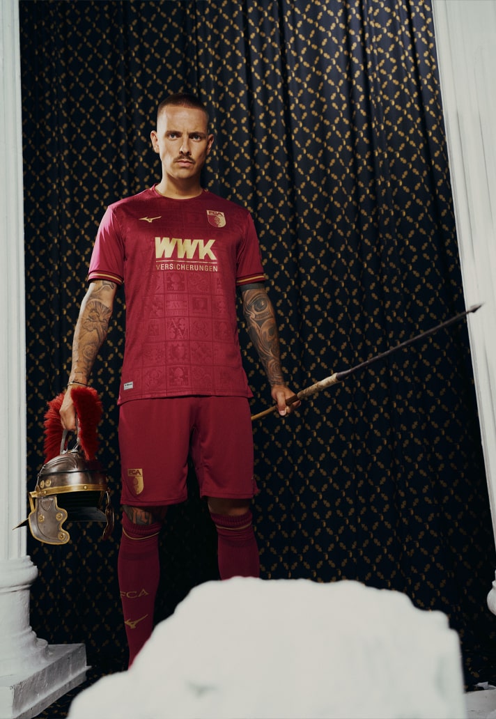 “The Roman kit is without doubt the centrepiece of this season’s collection and really crowns a great kit line-up,” explained FCA CEO Michael Ströll. “The noble-looking combination of Bordeaux and gold gives the shirt elegance and exclusivity that is sure to shine both on and off the pitch. It symbolises the connection between FC Augsburg and the history of the city of Augsburg and will no doubt be a big hit with both players and fans.”