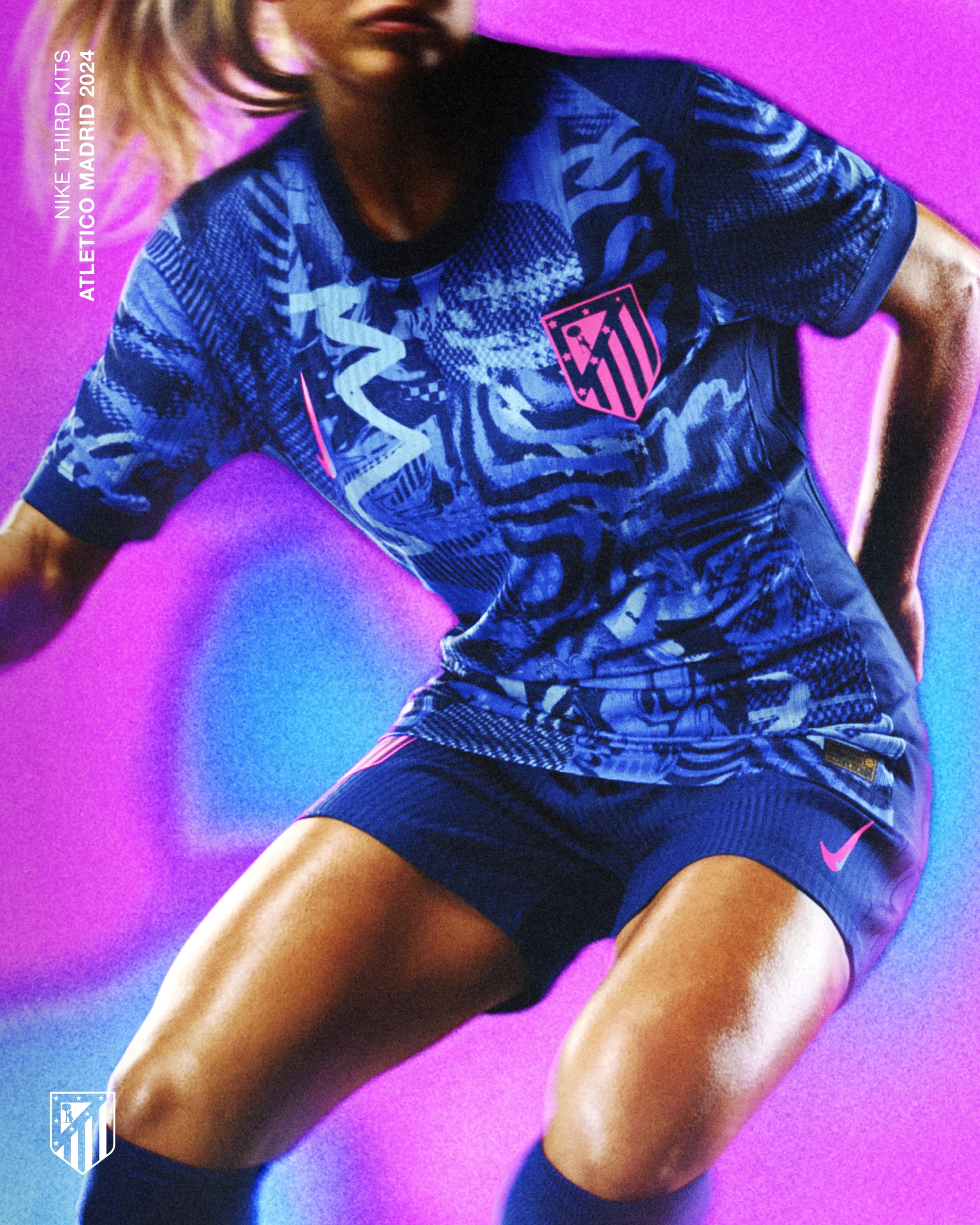 Celebrating the artists and athletes of the Spanish capital, Nike’s Atlético de Madrid third kit disrupts tradition with bold colours and vibrant patterns. The kit’s design features modern strokes of various shades of blue lighter and darker than the predominant deep navy.