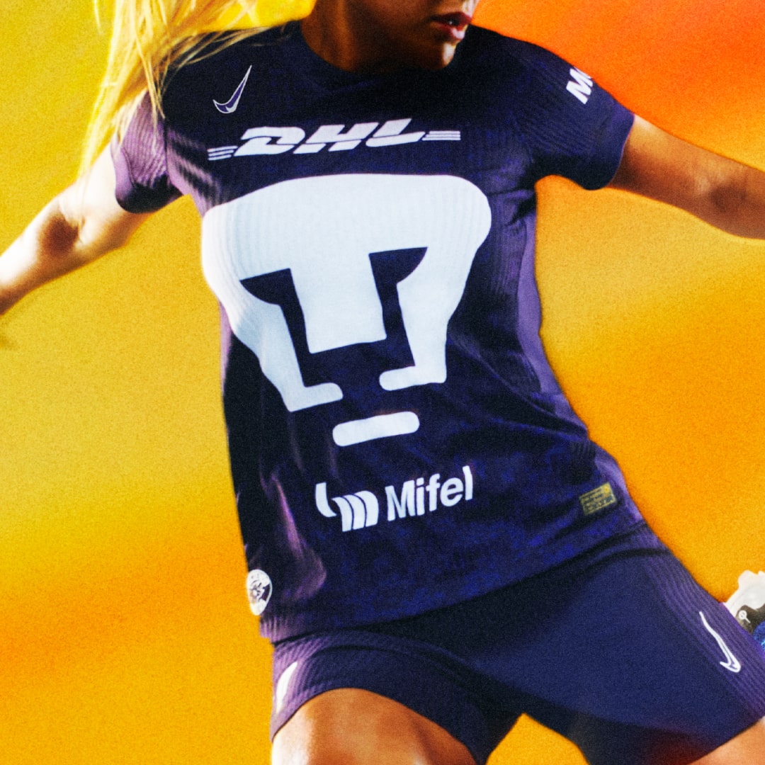 Nike’s Pumas third kit is inspired by the jacaranda tree which blooms every spring with purple flowers. The trees have become a staple throughout Mexico City and are found at various iconic city landmarks, including the grounds of Universidad Nacional Autónoma de México (UNAM) which is home to Pumas Club. It was the first university in the country to admit women.
