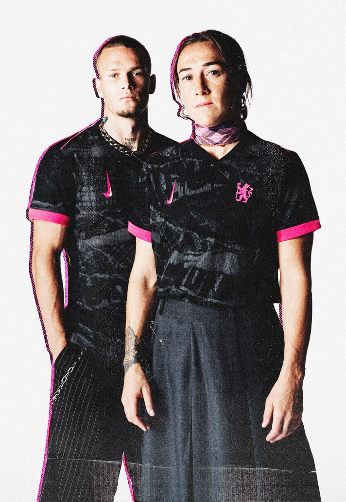 Celebrating the explosion of fresh creativity and attitude that was punk, Nike and Chelsea launch the club’s new third shirt for 24/25, which Chelsea Women debuted in their pre-season match against Arsenal in the United States.