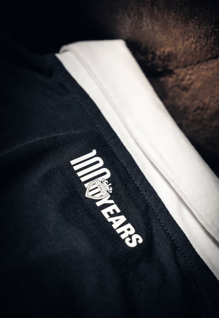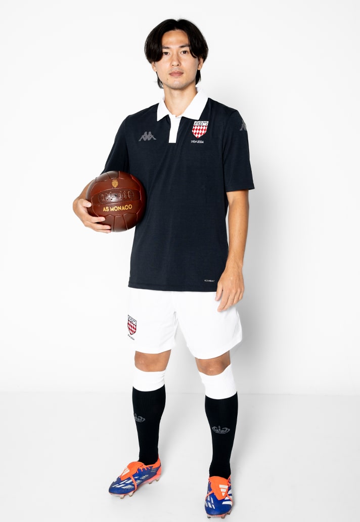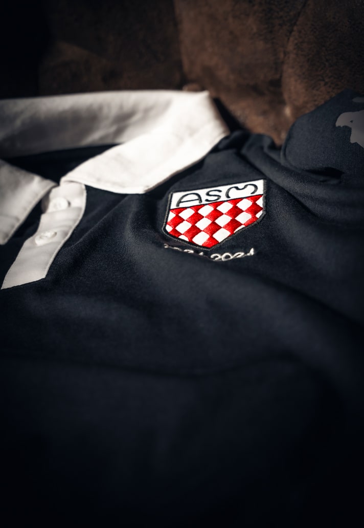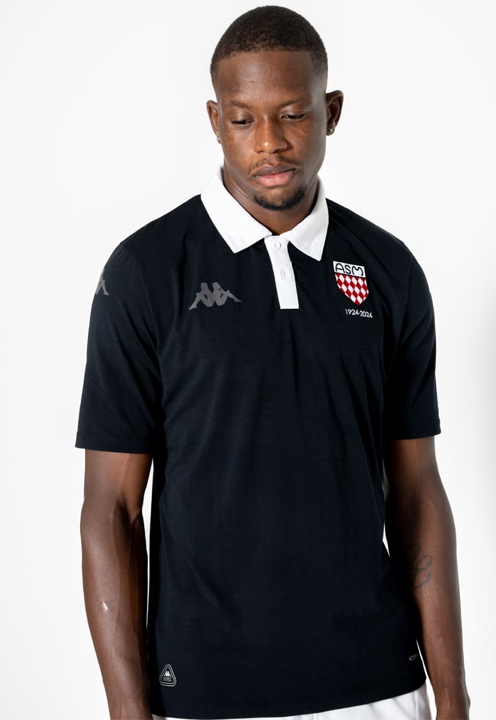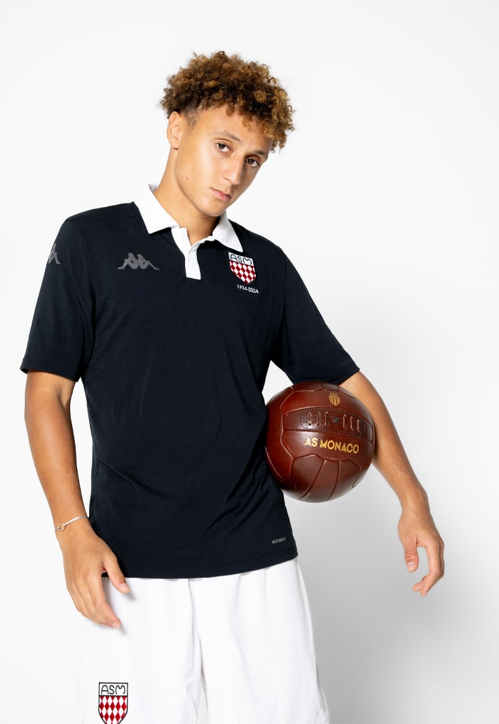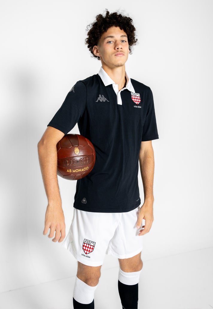The shirt arrives in a simplistic black base with a white polo collar, identical to that of 1924, lending it a rare elegance and authenticity. The black base also allows the crest – the only departure from the otherwise monochromatic presentation – to pop. It’s an embroidered replica of the one worn during the first seasons of AS Monaco, and while it proudly displays the letters "ASM" on its upper part, there are red and white diamonds underneath them reminiscent of the coat of arms of the House of Grimaldi, which inspired Princess Grace in 1960 to imagine the iconic diagonal that has adorned the Club's home kit ever since. At the bottom of the crest are the dates "1924-2024" which mark the Centenary of AS Monaco and underline a century of passion and excellence.