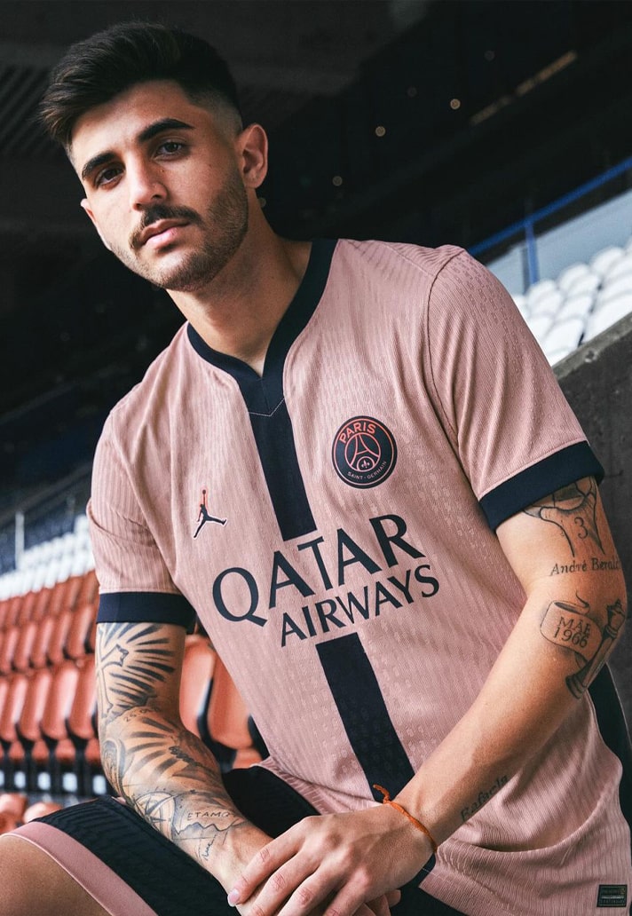 Showing no signs of letting up, PSG and Jordan are back at it with the club’s new third shirt, once again pushing the boundaries of style and sport. The pale pink kit, adorned with a black stripe, reflects the commitment of both brands to blend elegance with boldness, while capturing the unique spirit of the club’s new generation. The kit will be worn for the first time by Paris Saint-Germain’s men’s team in their match against Rennes on 27 September, followed by the women’s team against Guingamp on 29 September.