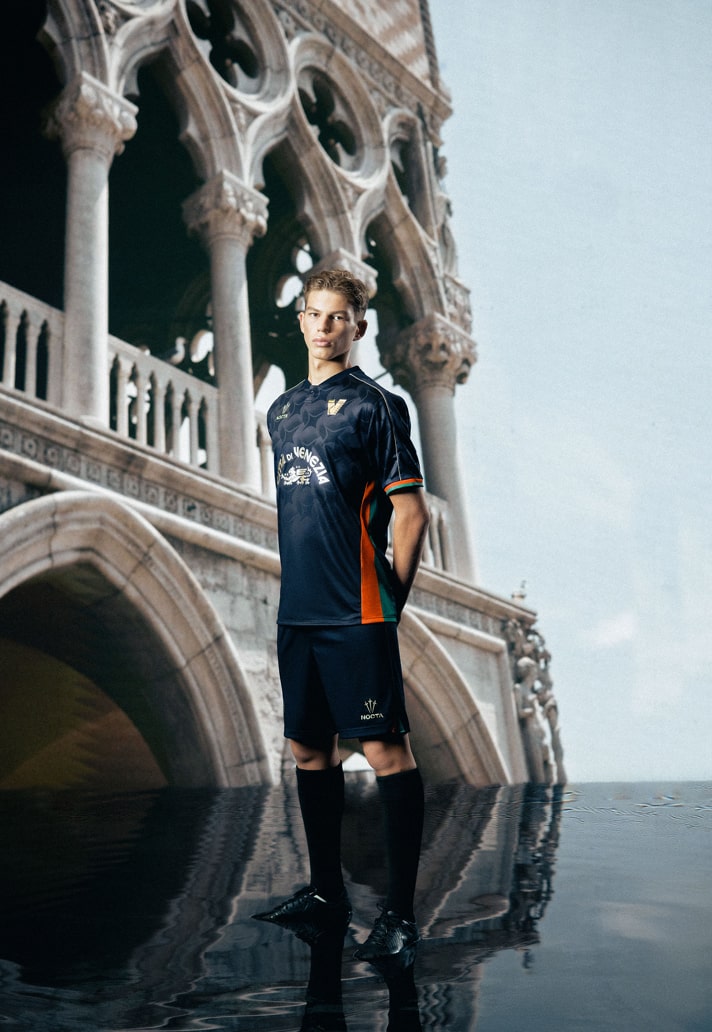 The 24/25 collection features designs that pay tribute to Venice while looking to the future: the Home kit, in sleek black with golden details, is adorned with a starry pattern reflecting NOCTA’s connection to the night sky over Venice. While rooted in the city’s culture, these details go beyond historical references, introducing a modern and refined interpretation of the Club’s identity.