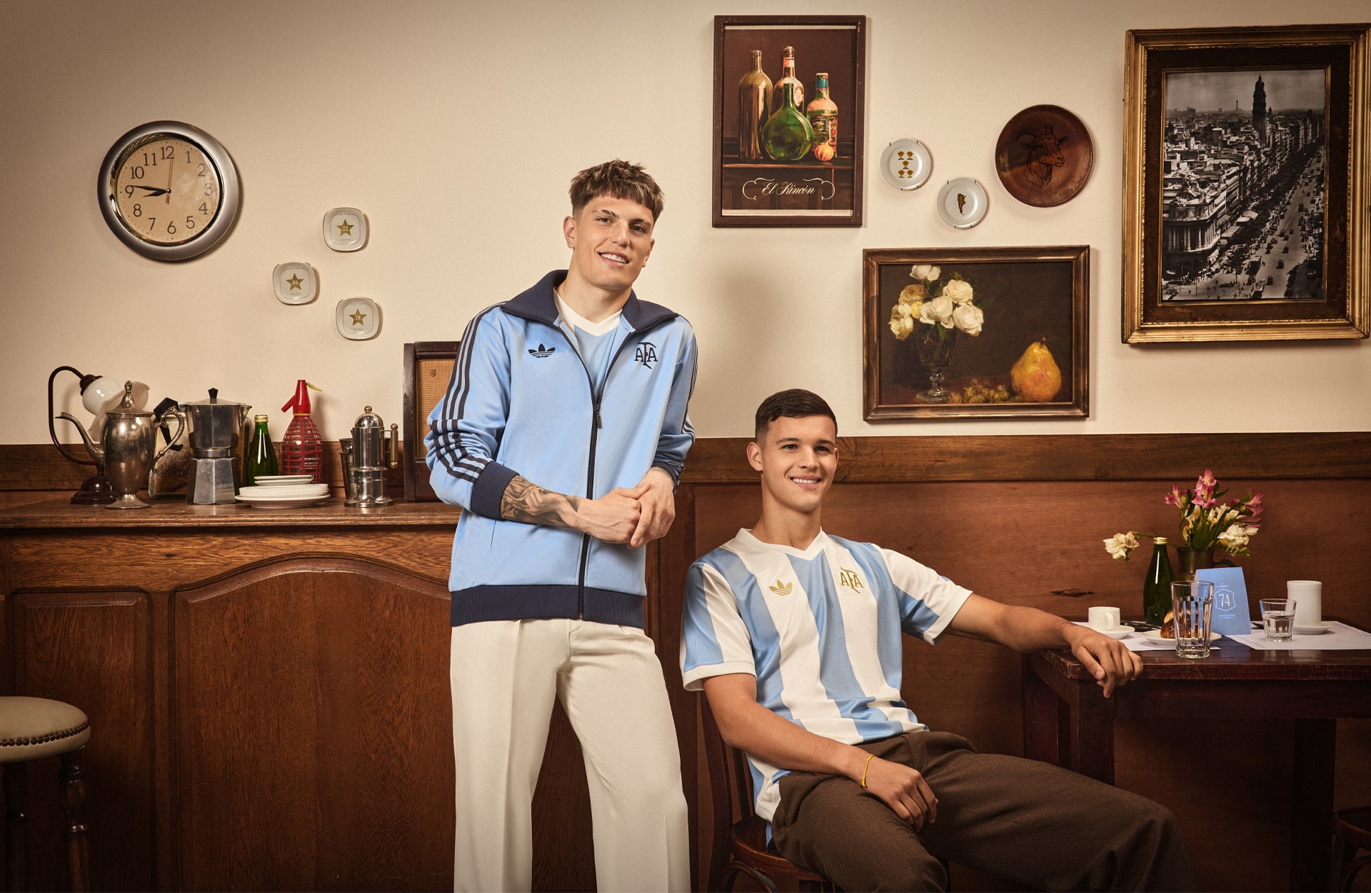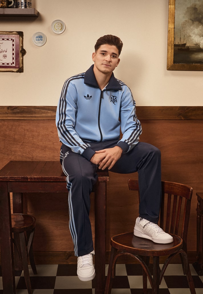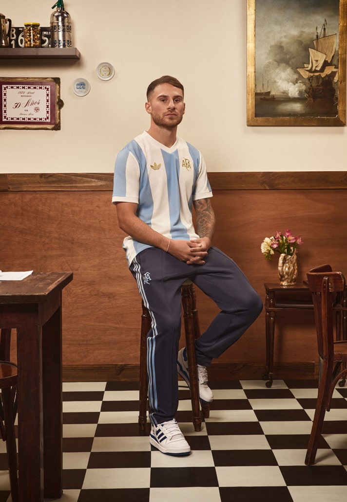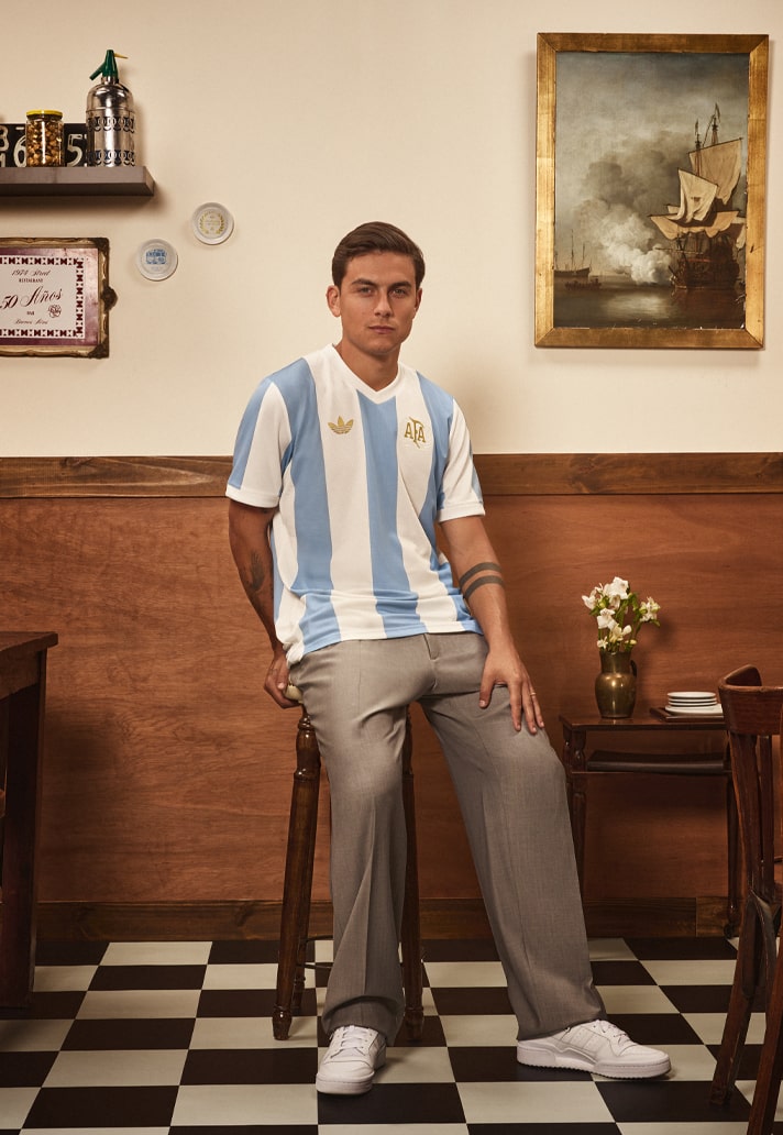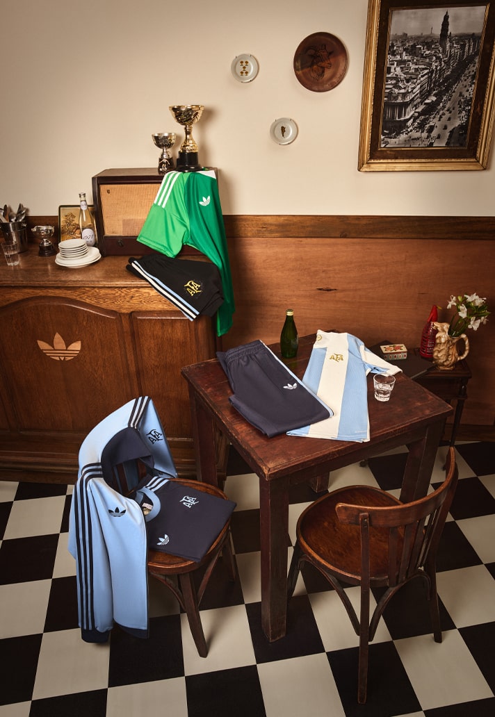 The retro-inspired design draws from the kit that the Albiceleste wore back in 1974, showcasing the distinctive and traditional Ambient Sky and Cloud White stripes. They’re complemented by a Trefoil logo and a stripped back mid-1970s Argentina crest on the chest, both of which are in gold to celebrate the achievements of the team over the years.