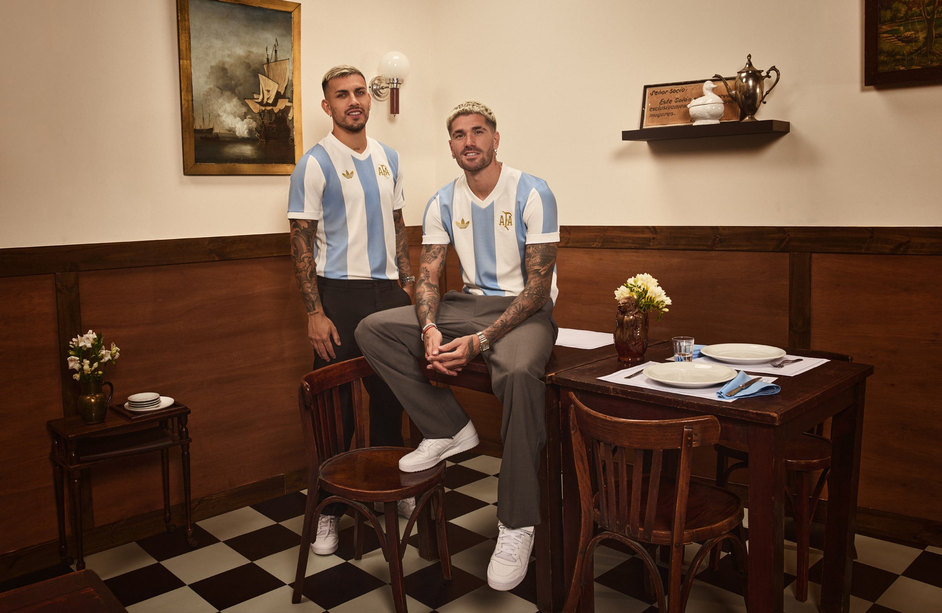 Inside the collar, there is a special graphic with a laurel wreath and the sun symbol of the Argentinean flag with the words 'En el alma y en la piel' (In the soul and on the skin). Above it are the words 50 ANOS, nodding to the 50 years of partnership, while below are three stars to symbolise the three World Cup wins.