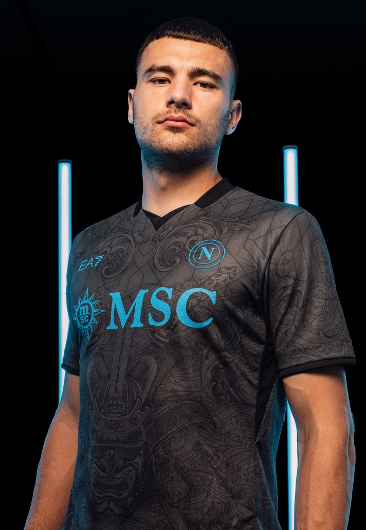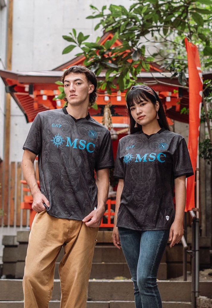 On the launch of the third kit, Tommaso Bianchini, Chief Revenue Officer of Napoli, said: “The third kit perfectly places itself at the heart of our project ‘From Napoli to the World’. Starting in Naples, we arrive at the Japanese city of Kagoshima to tell the story of the relationship between these two distant cultures that are linked by a warrior’s spirit. With this shirt, we celebrate strength, respect and loyalty, which are values that we proudly bring onto the pitch. We chose to present the kit in Kagoshima in honour of the historic twinning of our two cities. At the same time, we went to discover a hidden corner of Japan in Naples, the Ten Shin Zen Temple in Fuorigrotta where we filmed part of the launch video with students from the Samurai Academy Naples.