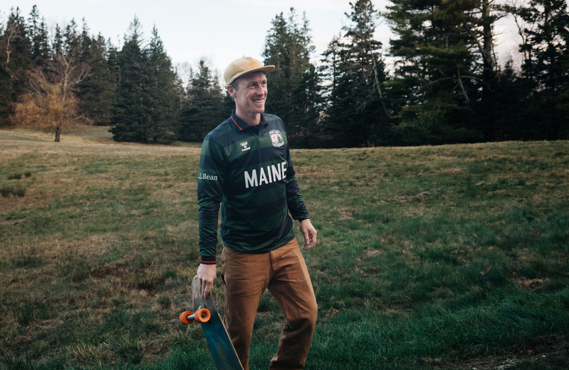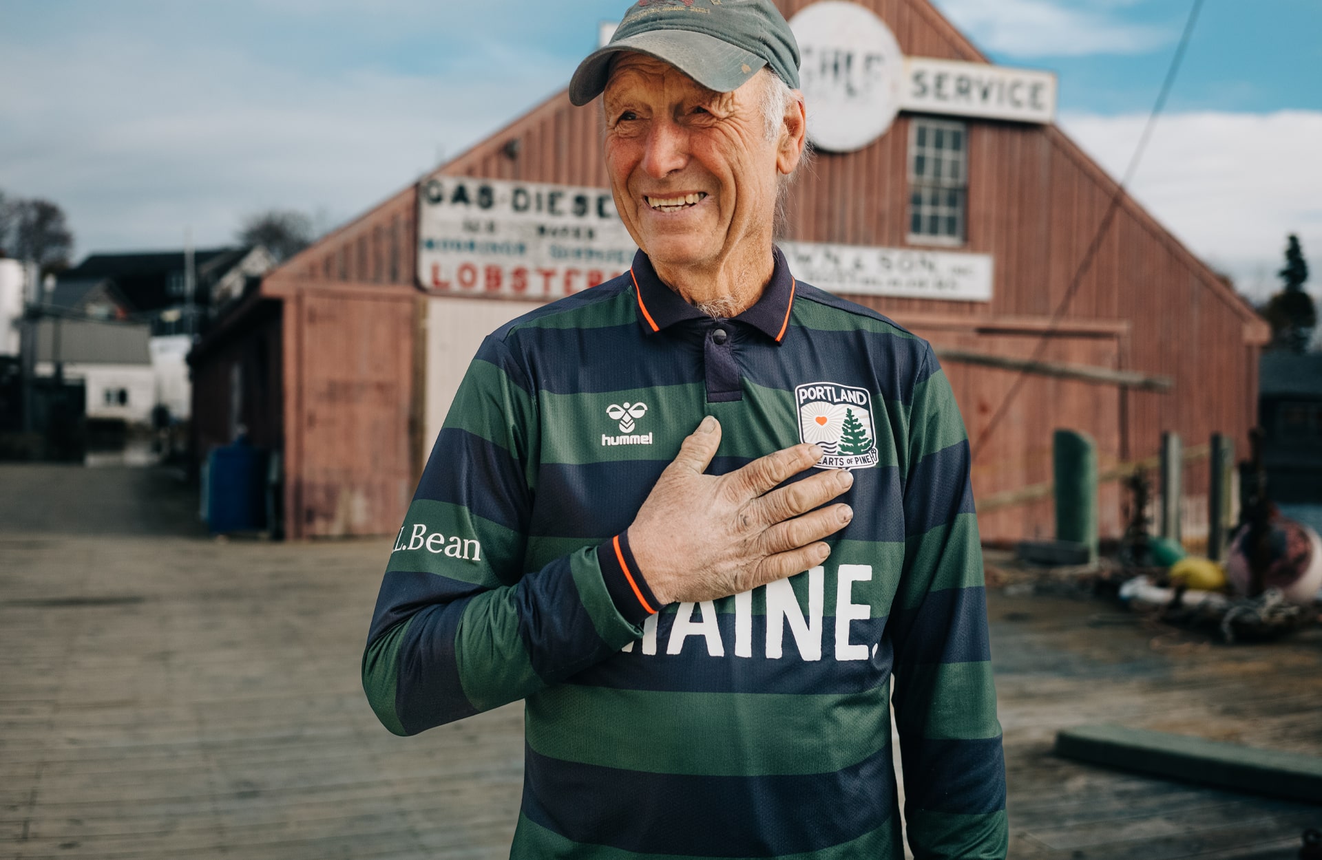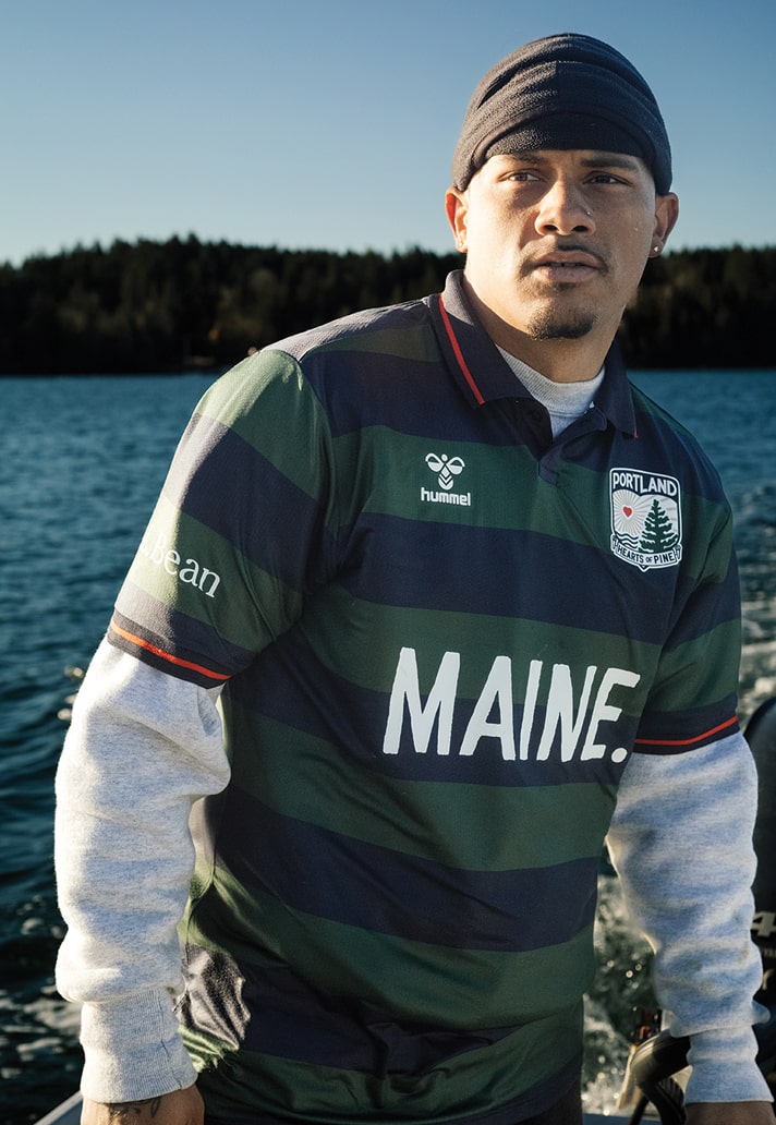 The kit arrives courtesy of hummel, and it perfectly balances the burgeoning identity of the club – deeply rooted in the local community and landscape – with a beautifully bespoke retro feel. That modern-retro approach features a horizontal striped pattern of green and blue representing Maine’s woods and water. It’s instantly a pretty unique colour combo in the game, but it’s one that works so nicely with the Maine backdrop. There’s an old school feel about the design, with the classic blue collars and cuffs both bringing a beat of design nostalgia and pulling through red accents from the Dirigo Heart in the club crest. As if to amplify that this is not the Portland Timbers, the word ‘Maine’ sits proudly in the sponsor slot. Finally, acting as a nice sign off to the design, the club motto is worn proudly under the back collar alongside the club’s Dirigo Heart.