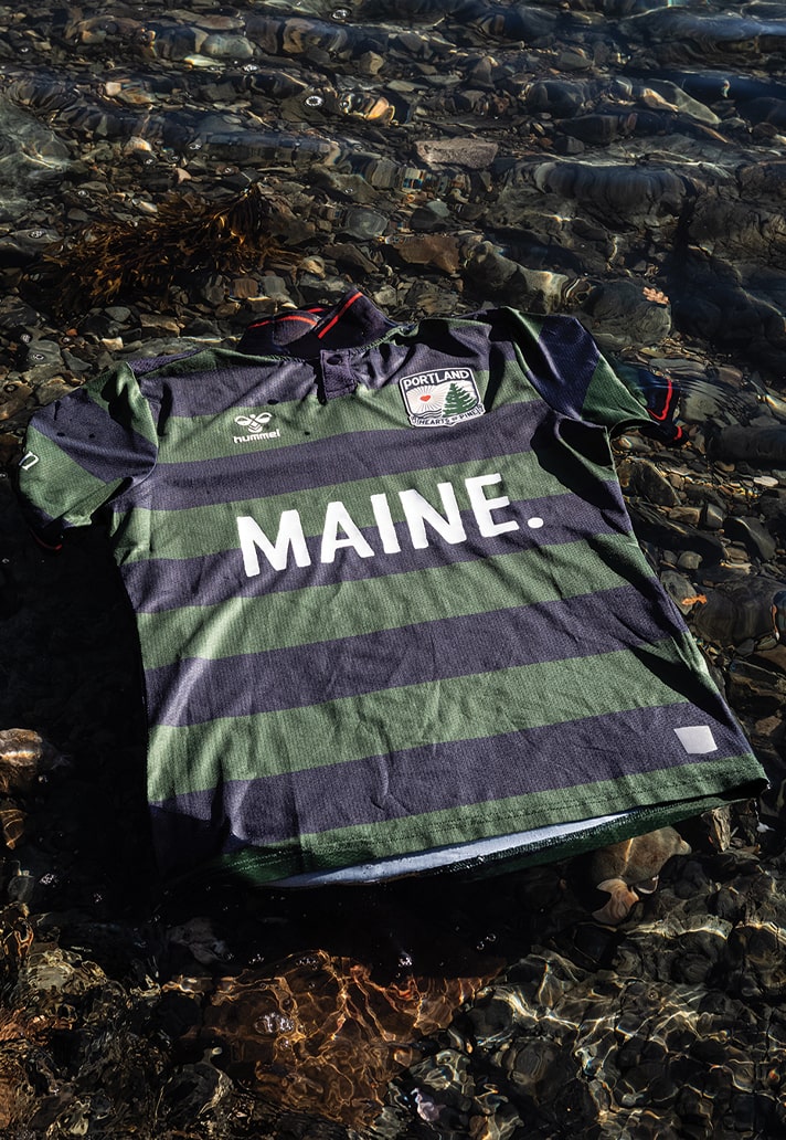 Before we go any further, lets clear something up for those of us that aren’t Stateside and in the know – this is not Portland, Oregon, home to the likes of Portland Timbers and Thorns. No, this is Portland, Maine, way over on the East coast. And it’s home to a new club set to debut in USL next year. So Portland Hearts of Pine haven’t even kicked a ball in anger to date, and yet they’ve already gone about establishing themselves as one of the most aesthetically pleasing and creative clubs in the American soccer scene right now. And as if to punctuate that opinion, the new club – who only established themselves in 2023 – have revealed their inaugural home kit, aptly titled the ‘Woods & Water’ jersey.