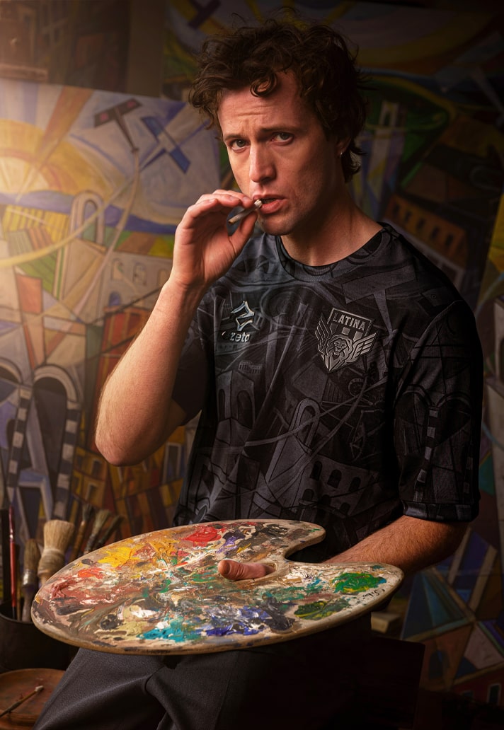 Serie C side Latina Calcio are Italian brand Ezeta’s first professional team, and as a result they’re pulling out all the stops for the club. Following on from the striking home and away combo for 24/25, which came in Ezeta’s rich signature style, steeped in historical story, they now reveal the Sibò Collection: a powerful tribute to the visionary genius of Pierluigi Bossi, known as Sibò, whose work forever changed the visual identity of Latina.