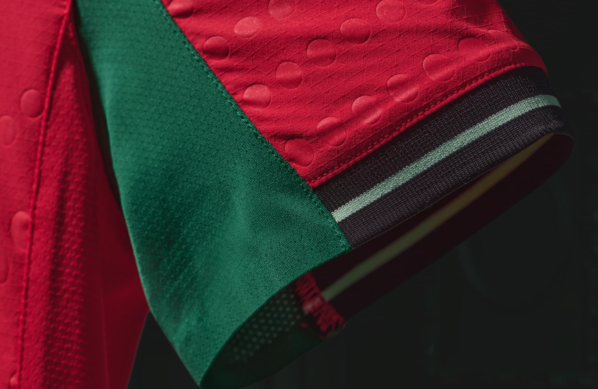 PUMA have dropped this launch with a bespoke kit for the women’s national team, including even more details to make a unique look. This includes an extended detail in the collar, wrapping the green and white all the way around rather than the cut version on the men, as well as an additional green block on the lower sleeve – a nice touch to keep to the traditional green and red colours of the Portuguese flag. The women’s away kit comes in a full mint green colourway rather than the white of the men’s, however still keeping to the faded dot pattern across the shirt.