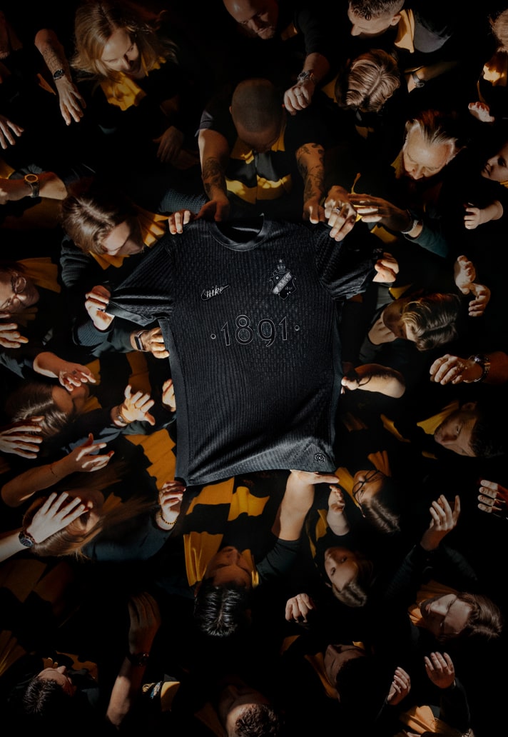 Of course, this isn’t the first time that AIK have gone for a blackout look – they grabbed the attention of the jersey culture world with a similar effort back in 2019. But this new jersey takes it to a whole new level. The design has been developed by AIK in collaboration with Nike, with a focus on capturing the club’s cultural significance to Swedish football. Every detail on the jersey is handcrafted in unique 3D silicone with infused metallic particles. This creates a shimmering depth and contrast against the black velvet base on which each element rests. It’s the intricacy and level of detail in this one that truly sets it apart.