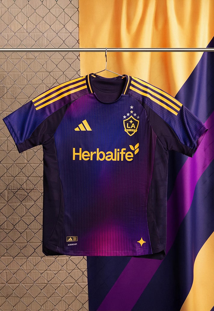 Got to give credit to the concept behind this one. Inspired by the magic hour skyline of Los Angeles – a city known for spirit and endless possibilities. The designs blends purple and blues in a stunning gradient across the jersey. You could probably either love or hate this one.