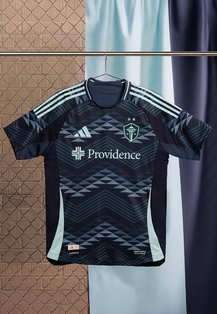 The 'Salish Sea' kit is designed in collaboration with artists representing the Puyallup, Muckleshoot and Suquamish tribes – paying homage to the Sounders deep connection to the Puget Sound. The stunning pattern is a nod to the flowing nature of the water, though the voices of women who have continued Coast Salish weaving practises for generations. A simple black base, complemented with multiple shades of blue and a beautiful story to go behind it – chef's kiss.