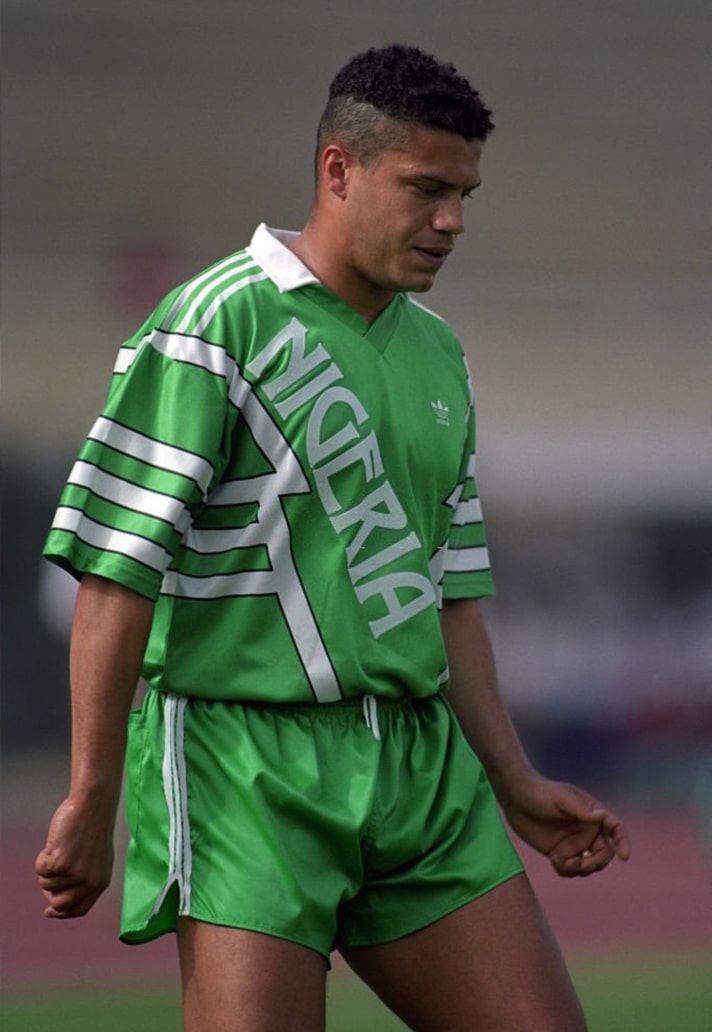 Another iconic kit by adi, modelling a unique design unlike ones of the past. The Trefoil sees a transfer to the other side of the shirt, with a bold 'Nigeria' in print across the face of the shirt. This kit goes into our hall of fame of International Trefoil kits, posing ahead of its time and bringing an innovative new look to the international stage.