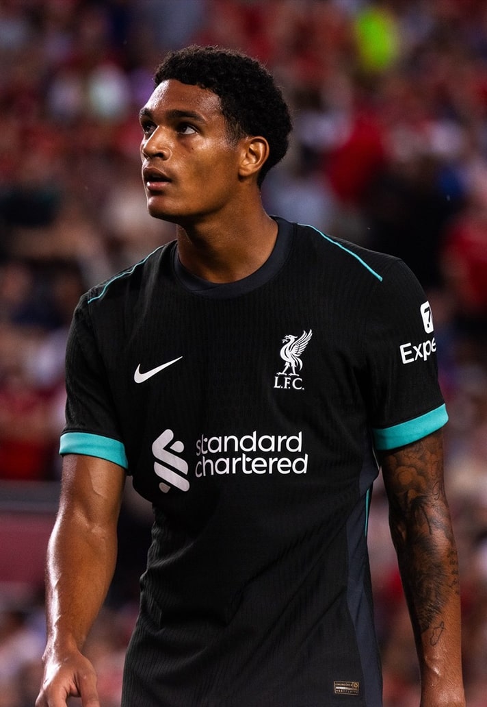With a retro feel, the 24/25 home shirt featured a pinstripe design at first glance, but when viewed closer it actually revealed a chrome yellow pattern of the club’s YNWA motto etched into the fabric of the shirt. The look harked back to the pinstripe designs of the early 80s, and the retro flavour of the design continued on with the unique collar, which boasted traditional yellow and red detailing. Its presentation was a nod to the iconic collar worn by the ’84 team led by Joe Fagan, who lifted the European Cup in Rome that year wearing this original kit, to complete a treble.